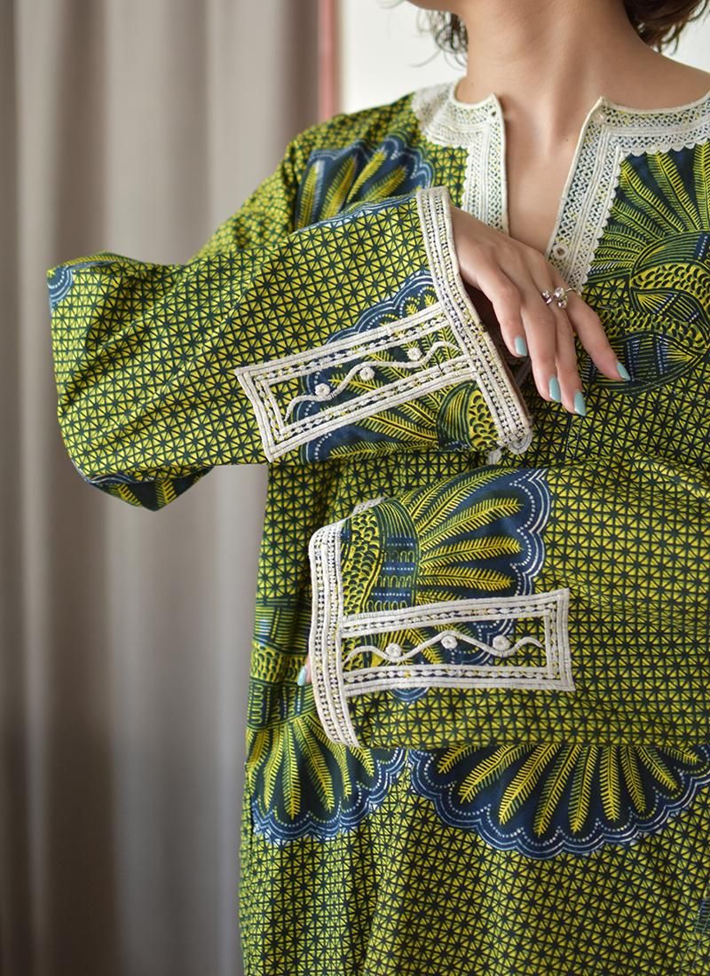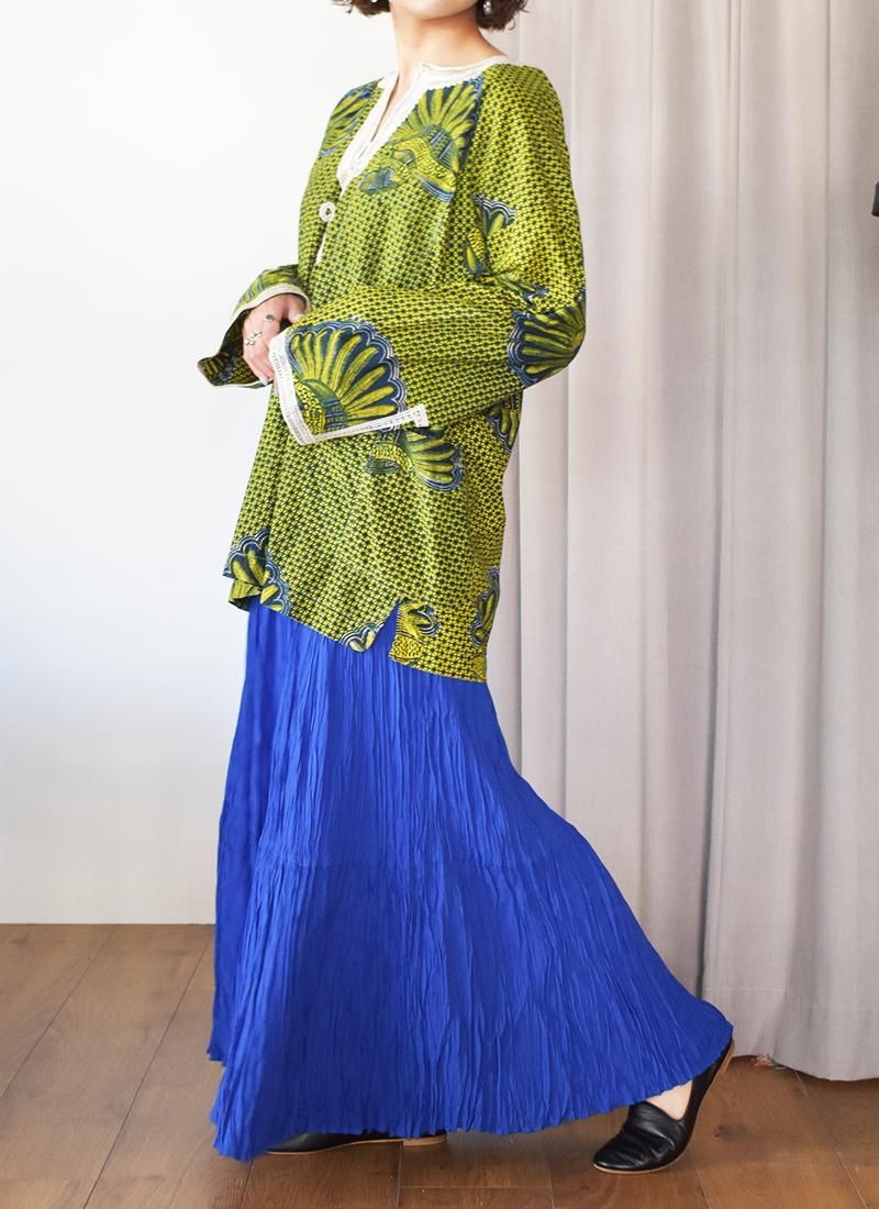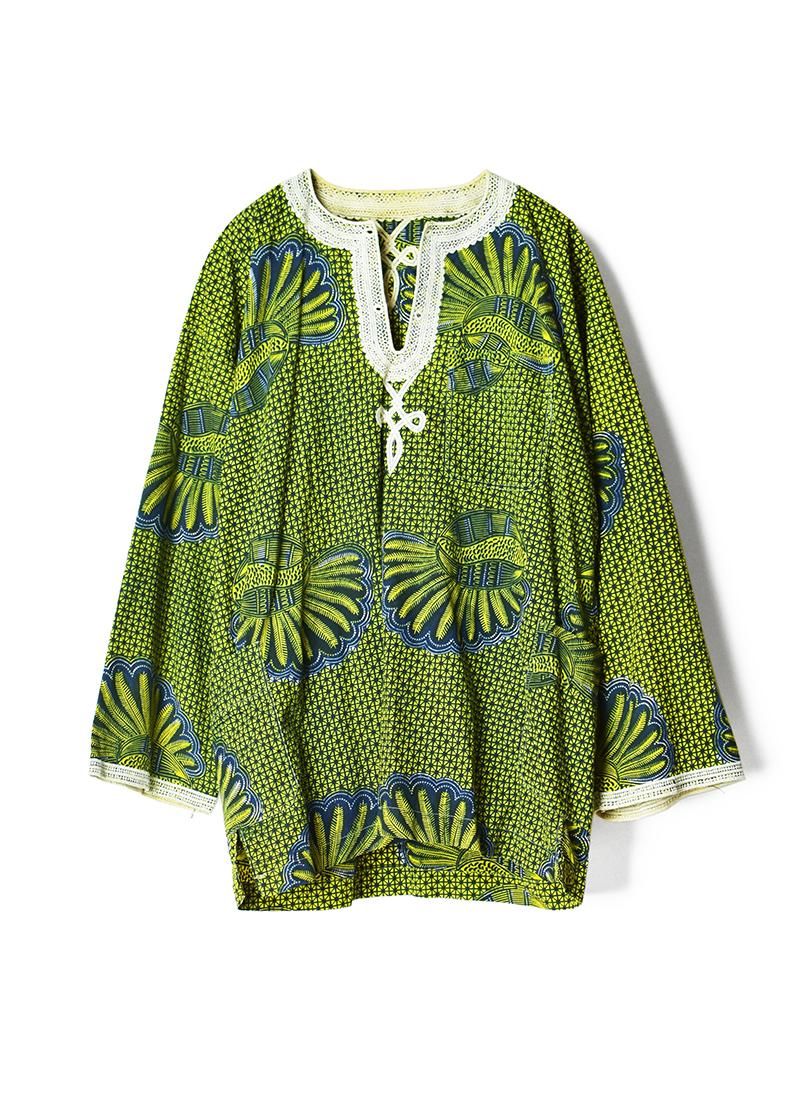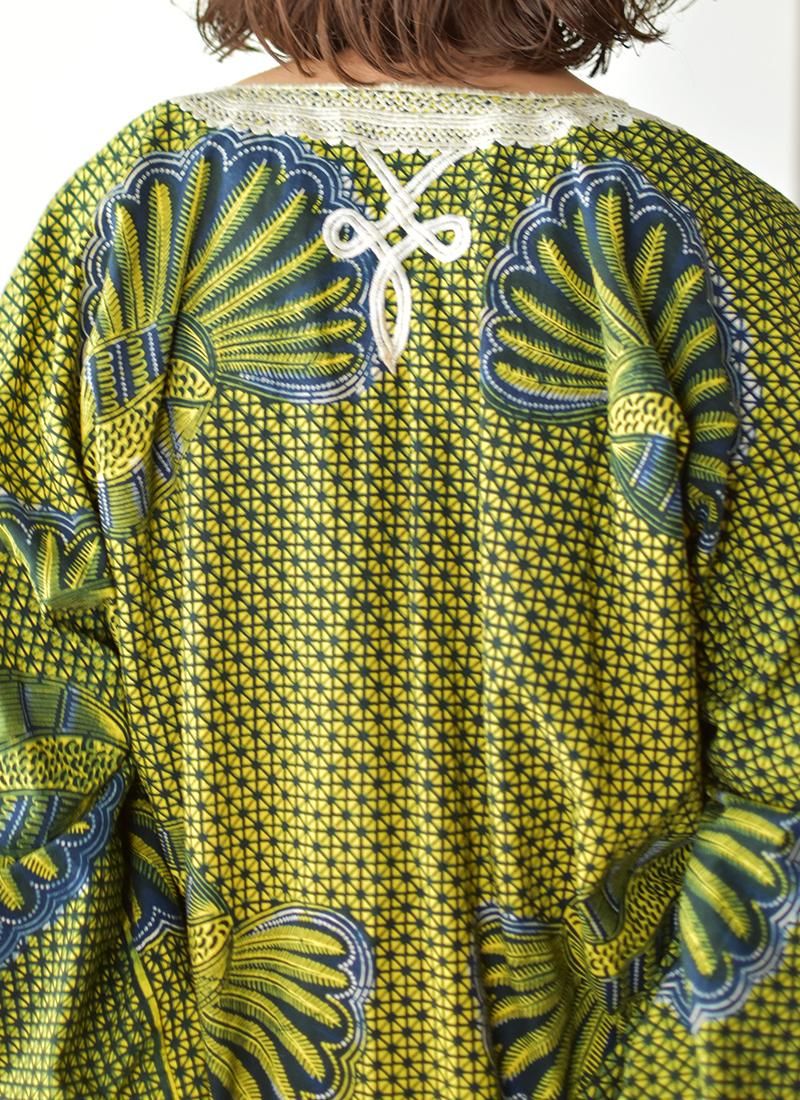 アフリカンらしい大胆でカラフルな柄がプリントされており、心躍る様な一枚。
