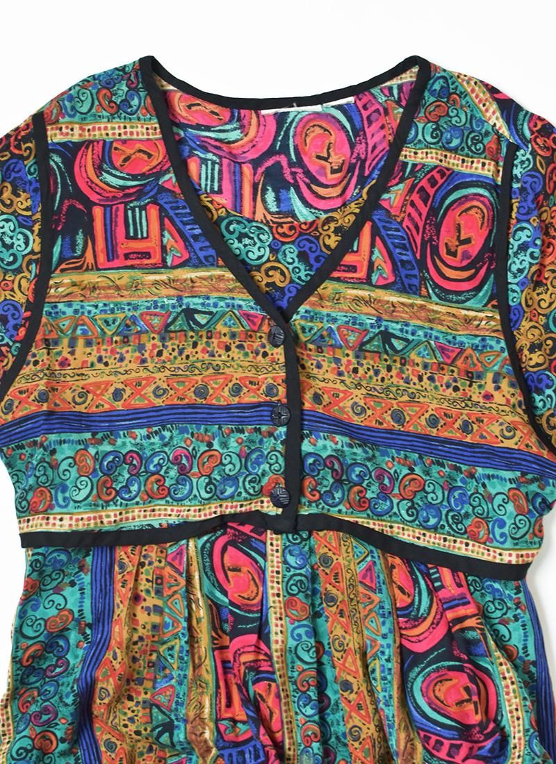 民族調をベースにした80年代頃、マルチパターンのドレスです。
