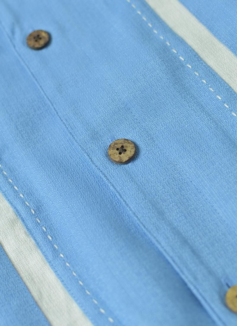 レーヨン特有のとろみのあるオープンカラーシャツ。