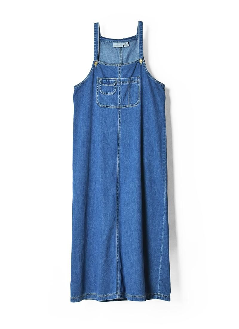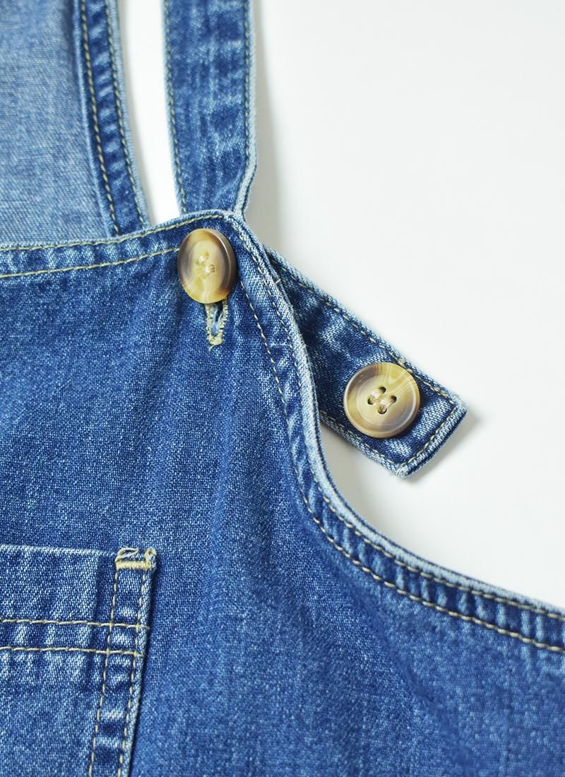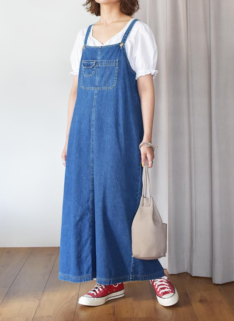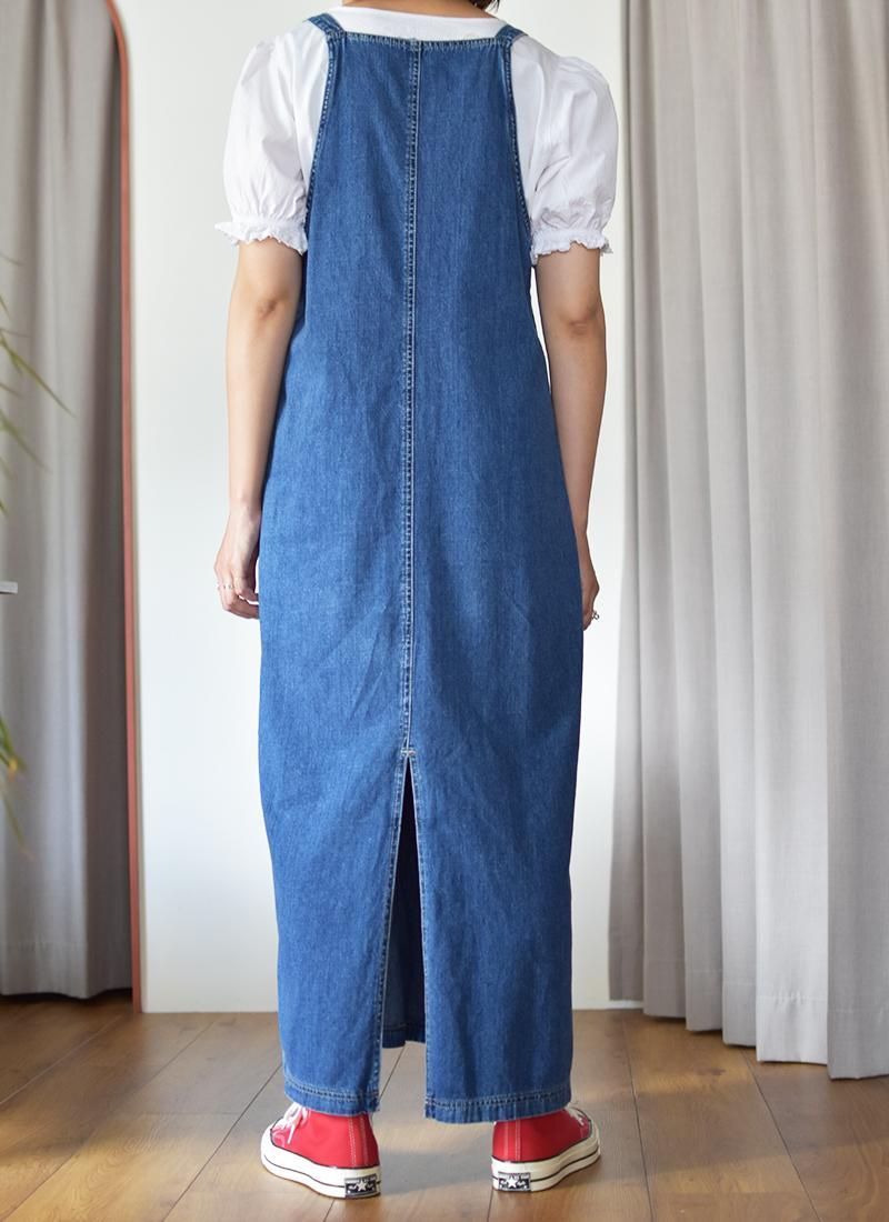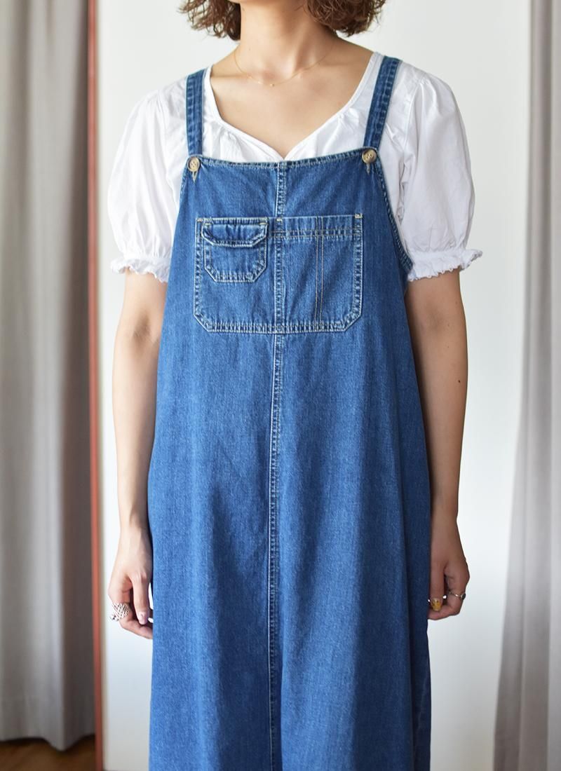 ワークエプロンをモチーフにしたかの様なデニムワンピース。