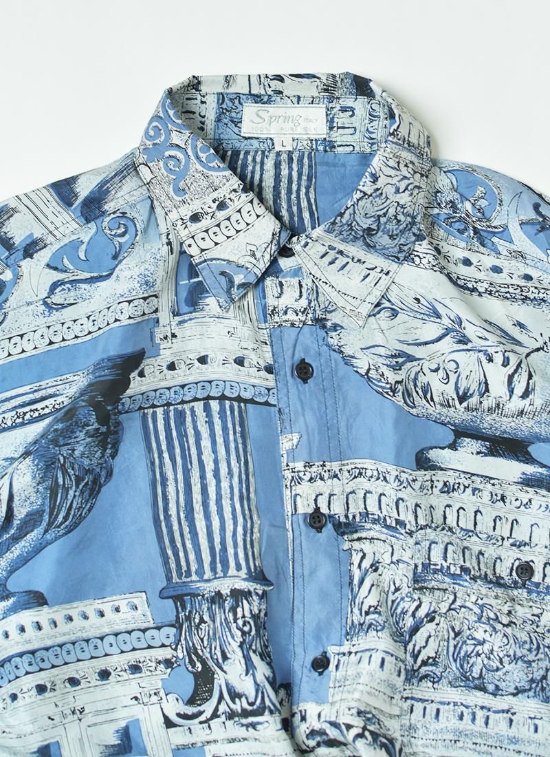アートのようなモダンプリントが素敵な90年代頃のシルクシャツ。