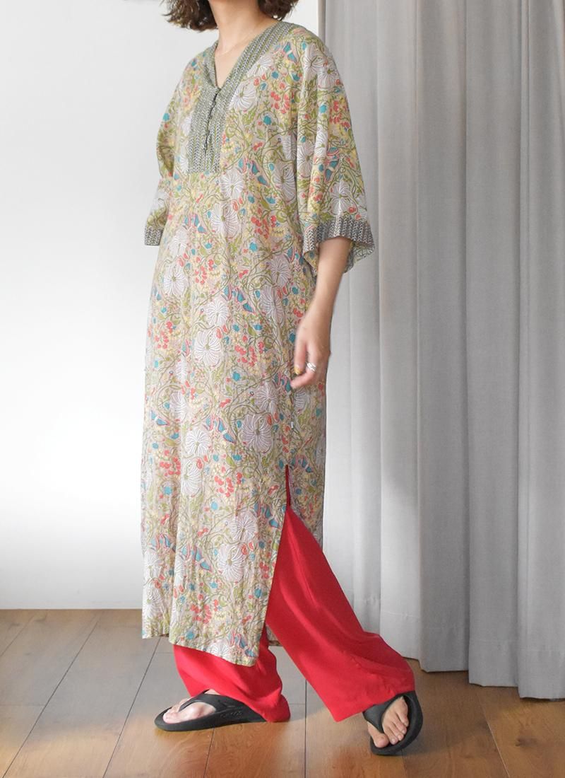 ヴィンテージインドコットンならではの柔かな素材が美しいフラワードレス。