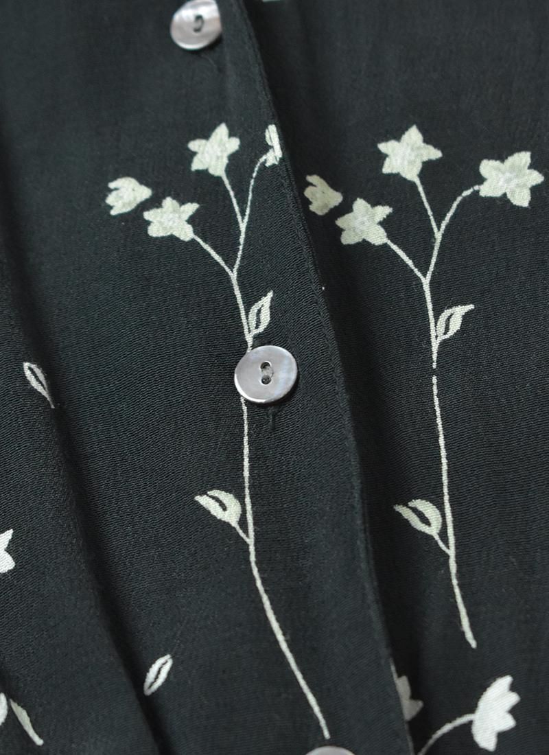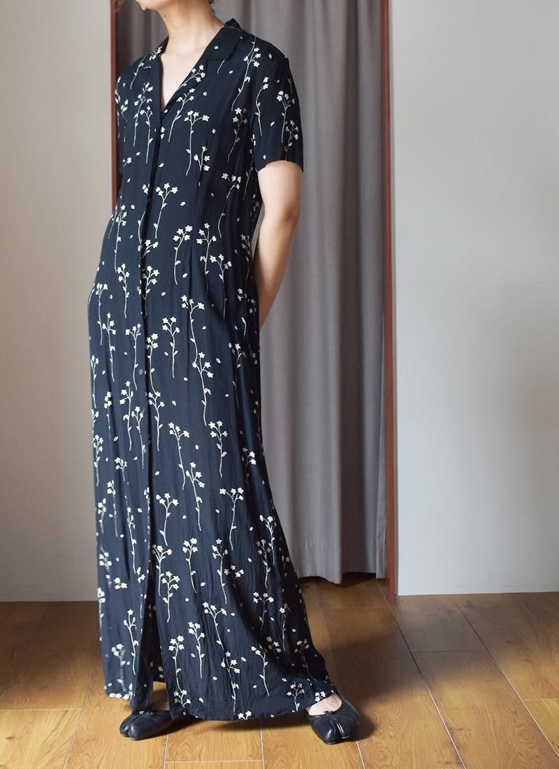 ブラックベースにモノトーンの花柄が綺麗な90年代エディーバウワーのシャツドレス。