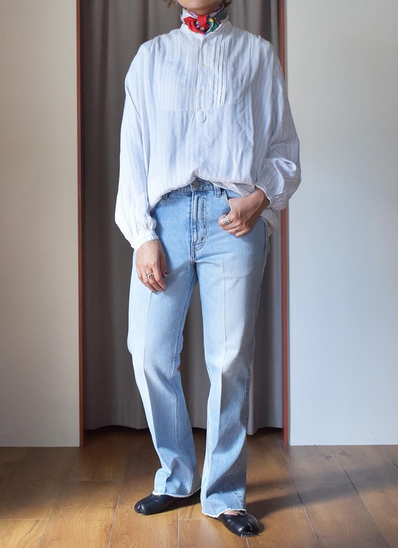 ドレスシャツをカジュアルダウンさせたデザインの80年代頃のブラウス。