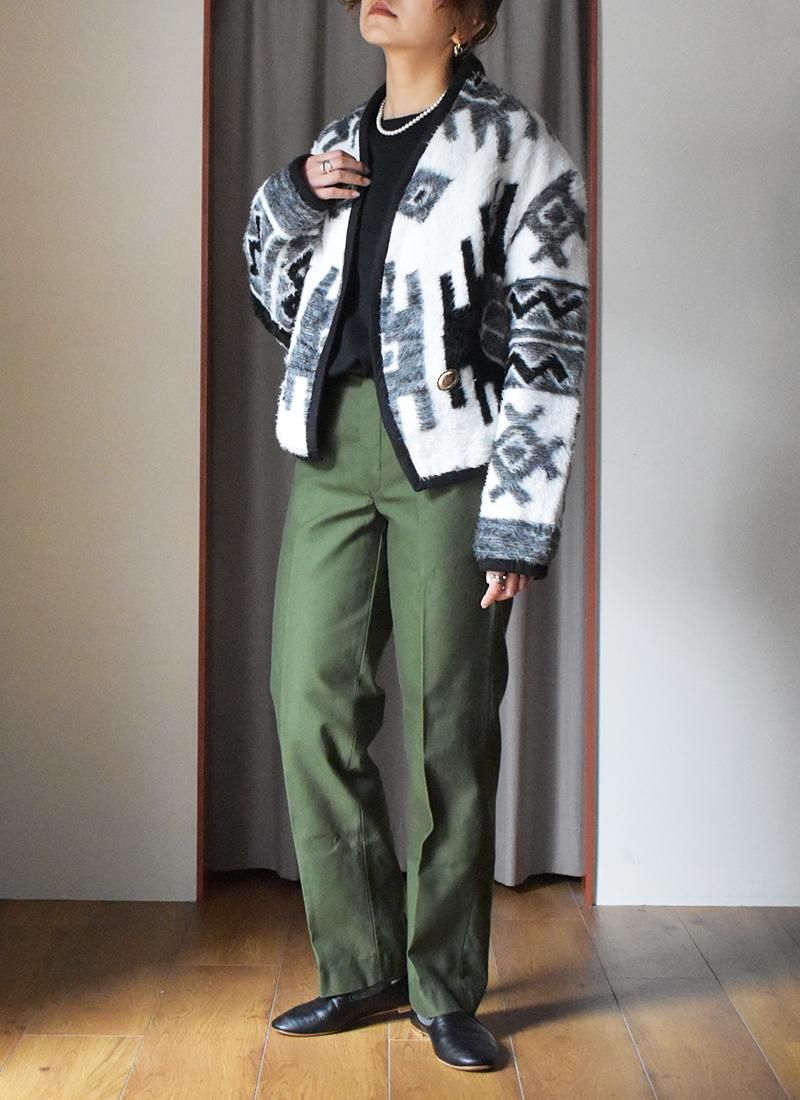 ショート丈でゆったりとした身幅なのでオーバーオールやハイウエストのパンツなど合わせても素敵です。