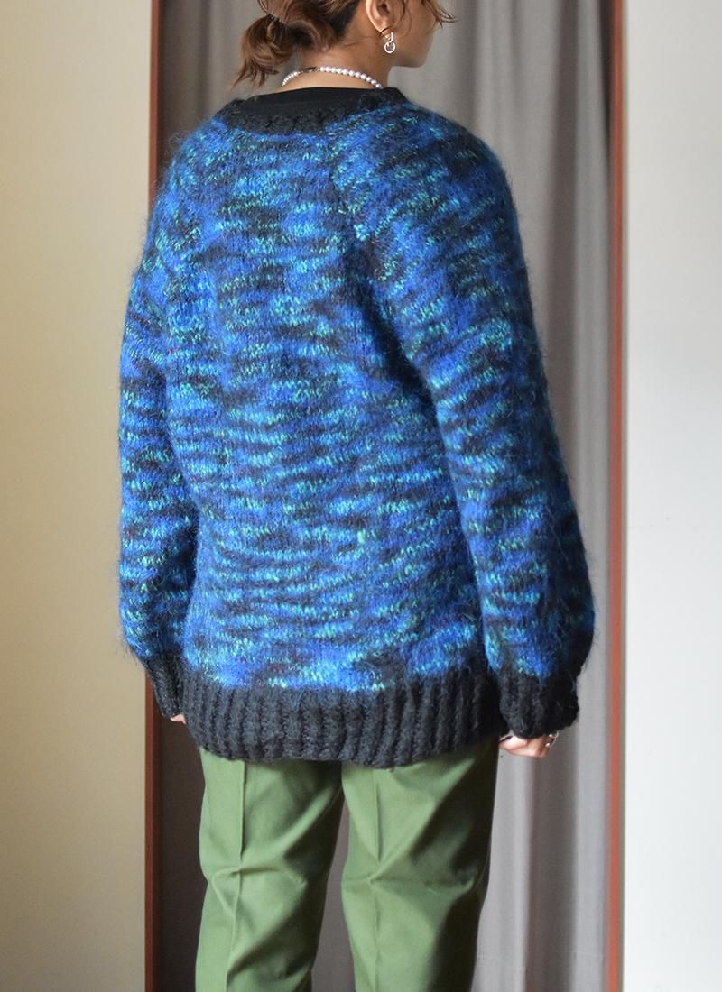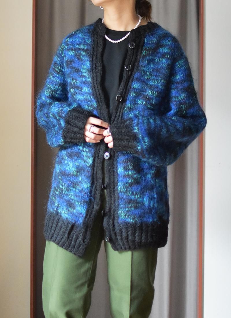 ウールとモヘアがミックスされたニットカーディガン。