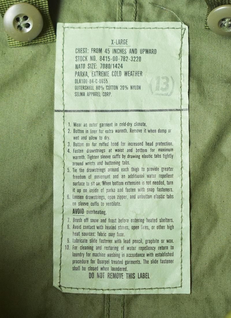 シェル、フード、ライナーの3つが全てデッドストックコンディションです。