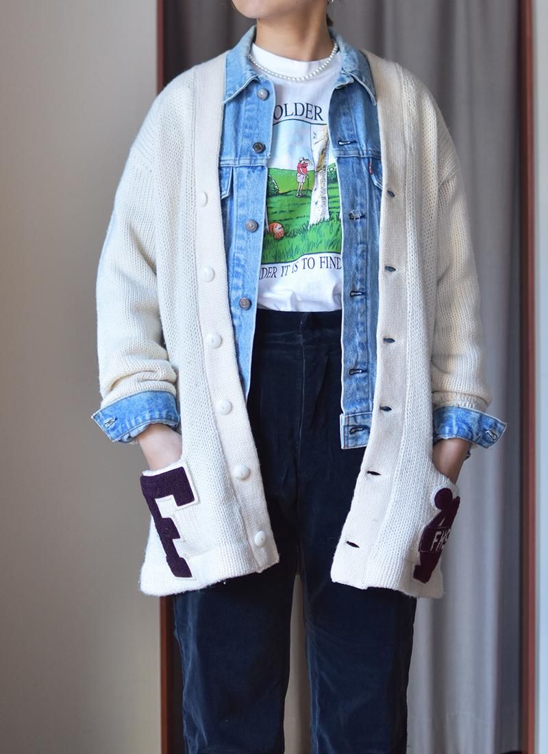ホワイトのボディーにワッペンがアクセントになった50年代のレタードカーディガンです。