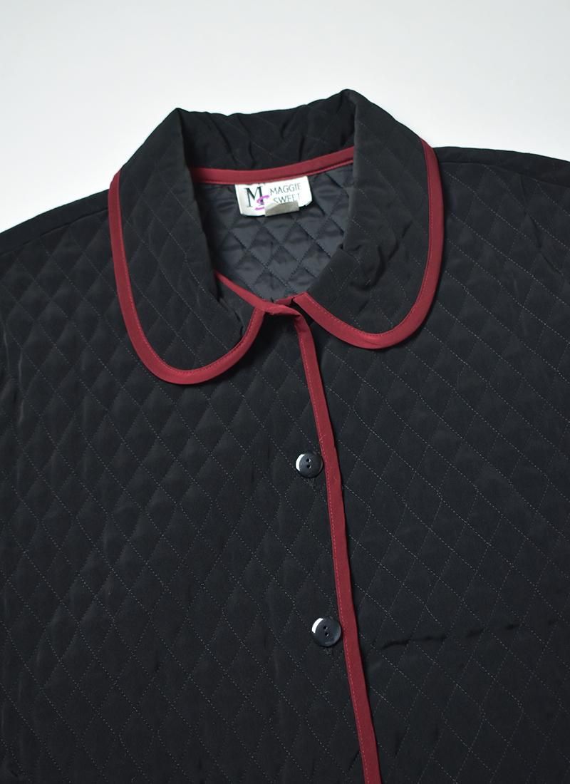 丸っこい襟や赤のパイピングが可愛い一枚。