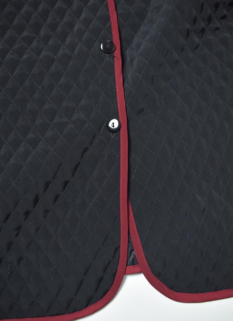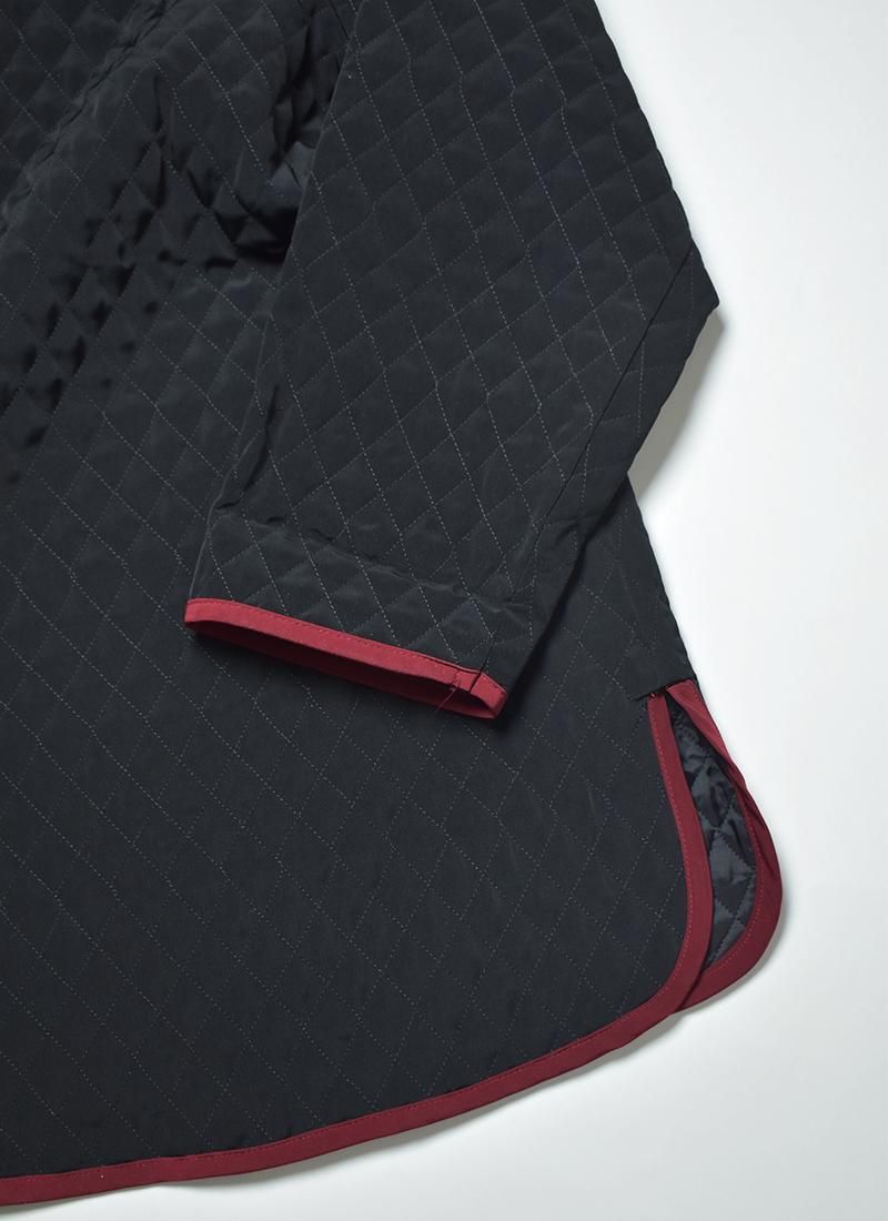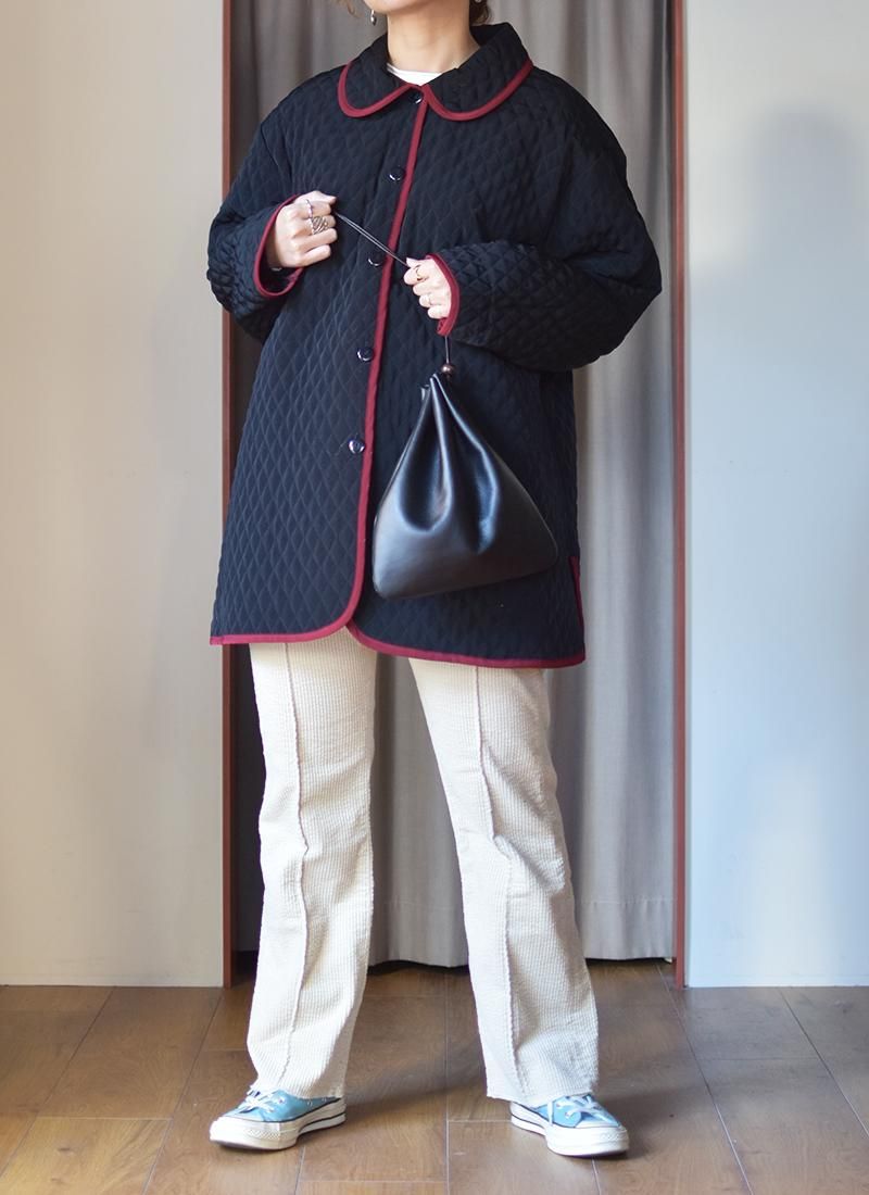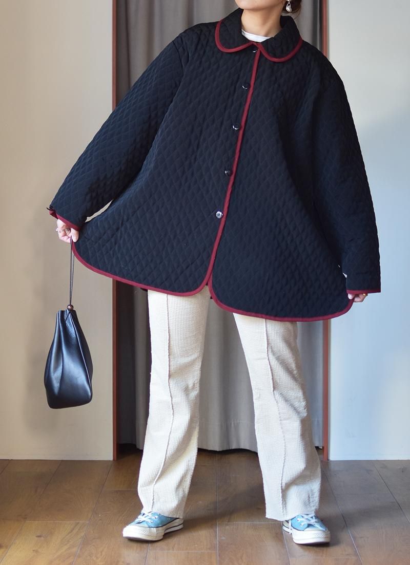 幅広い身幅が特徴なキルティングコート。