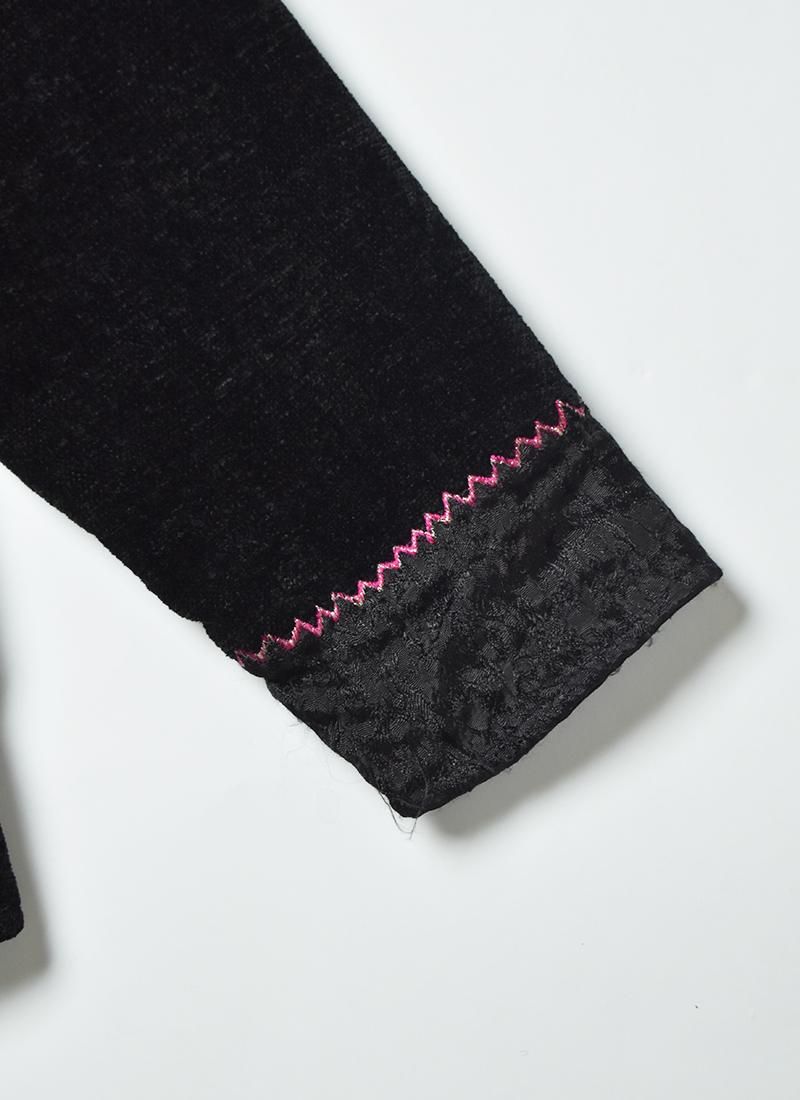 形はノーカラーのジャケットタイプなので甘くなり過ぎず、大人の女性にも羽織れる一枚。