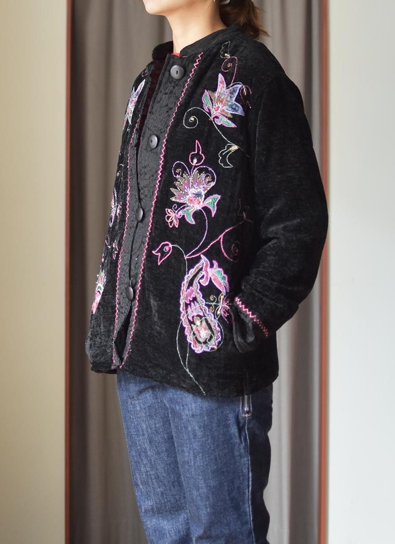 大胆な色使いやデザインに目を引くエスニックジャケット。