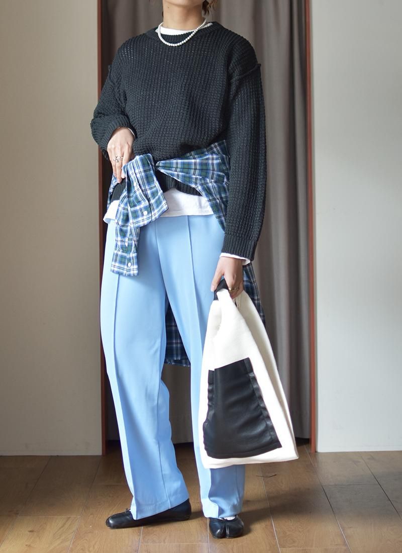 センターステッチが入り、足長に見える綺麗なバランスのストレートシルエット。