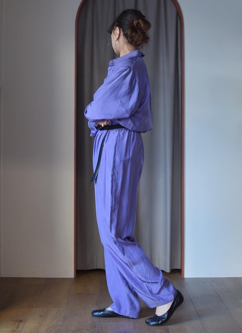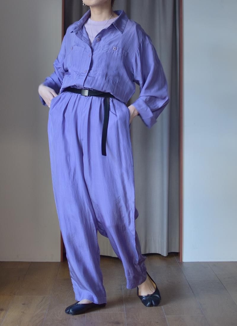 上品な雰囲気のパープルカラーにとろみ感のあるシルク素材。