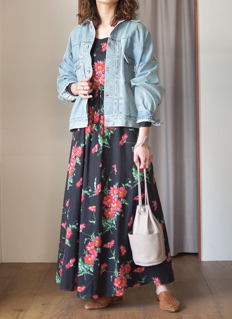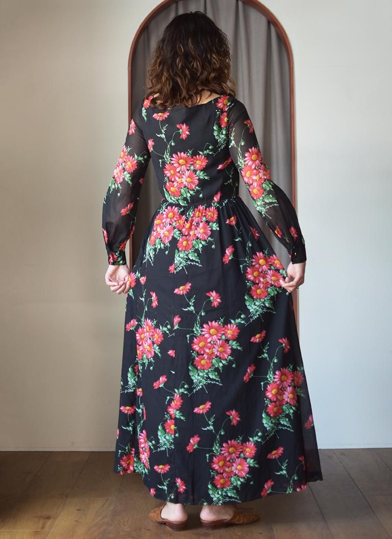 クラシックな花柄が素敵な80年代頃のロングドレス。