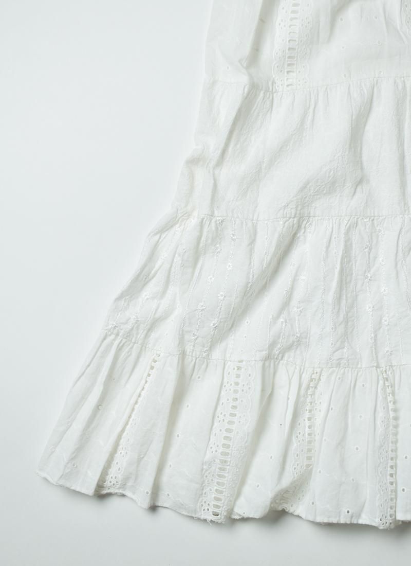 程よいボリューム感や切り替えのデザインが印象のレースロングスカート。