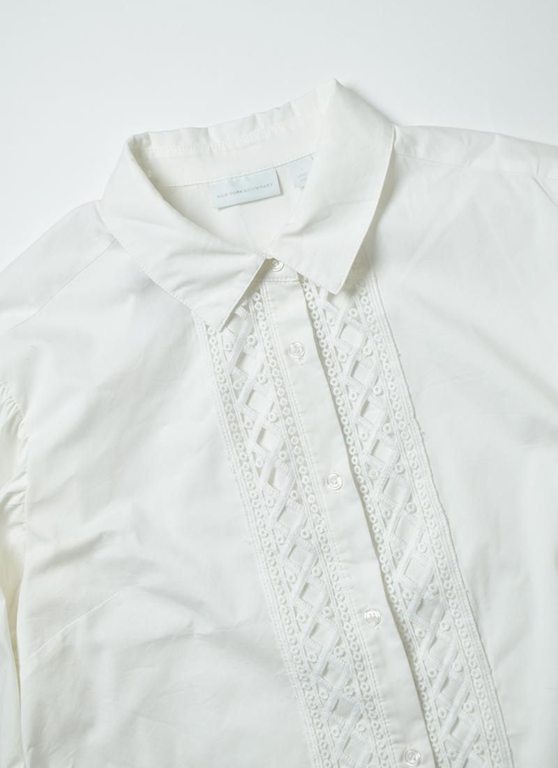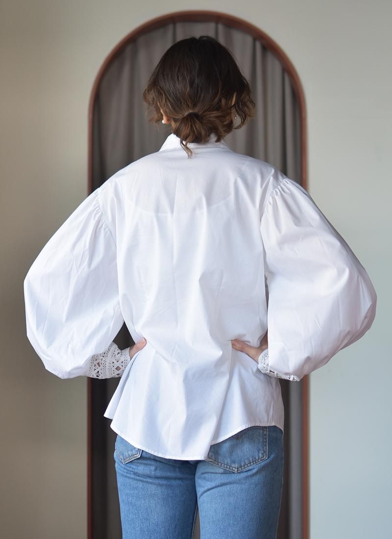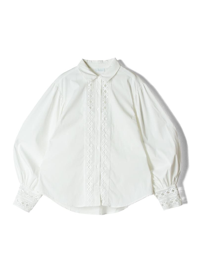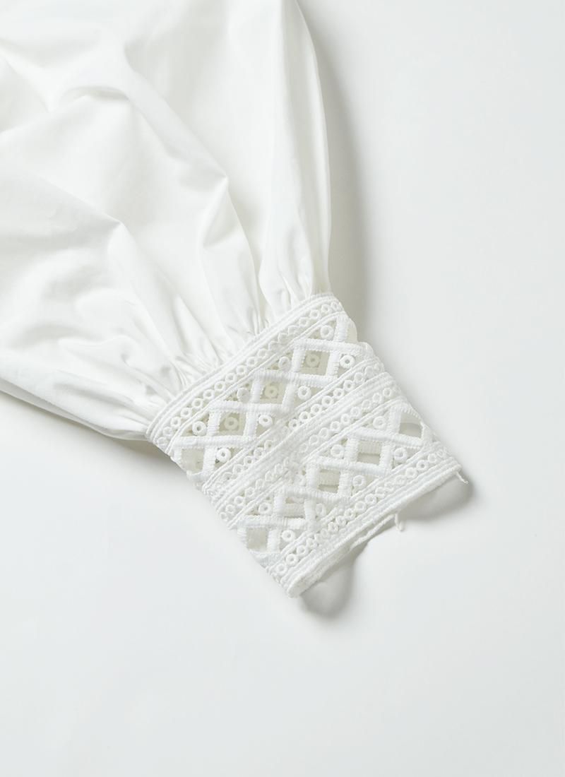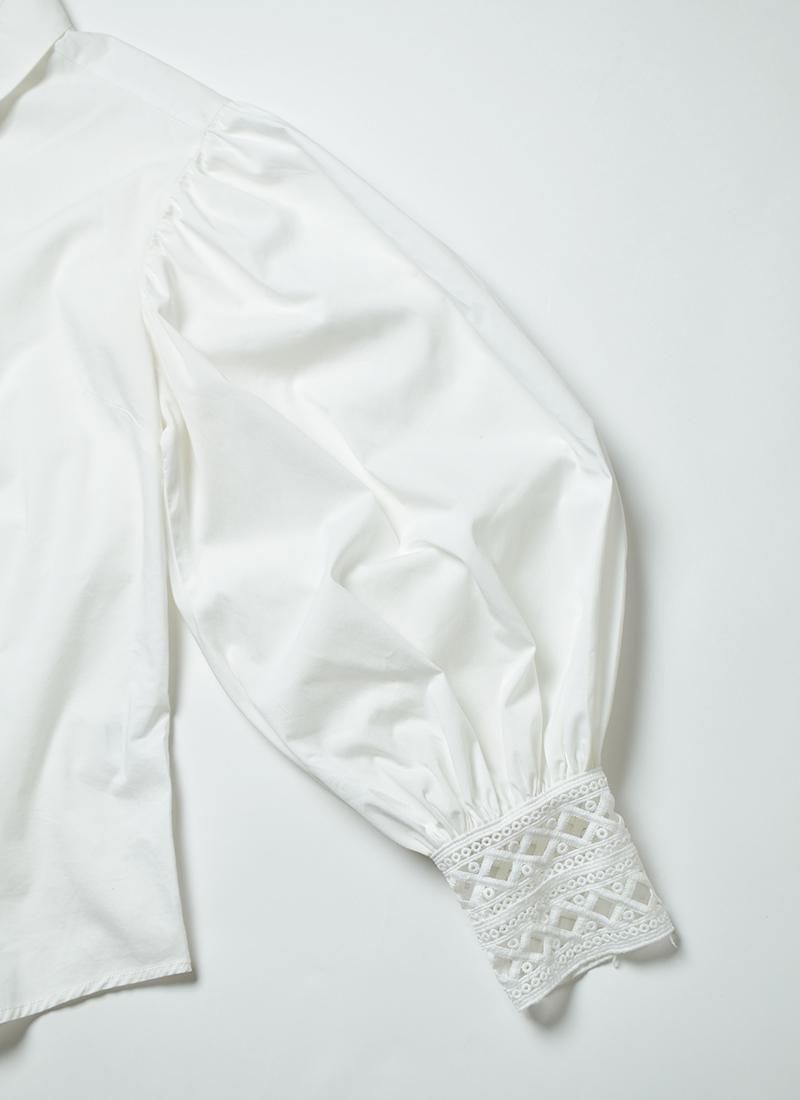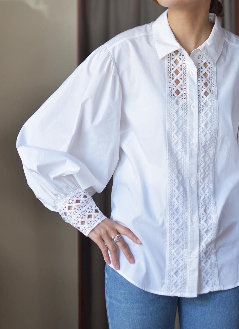 フロントと袖口の刺繍レースやバルーンスリーブが素敵なコットンレースブラウス。