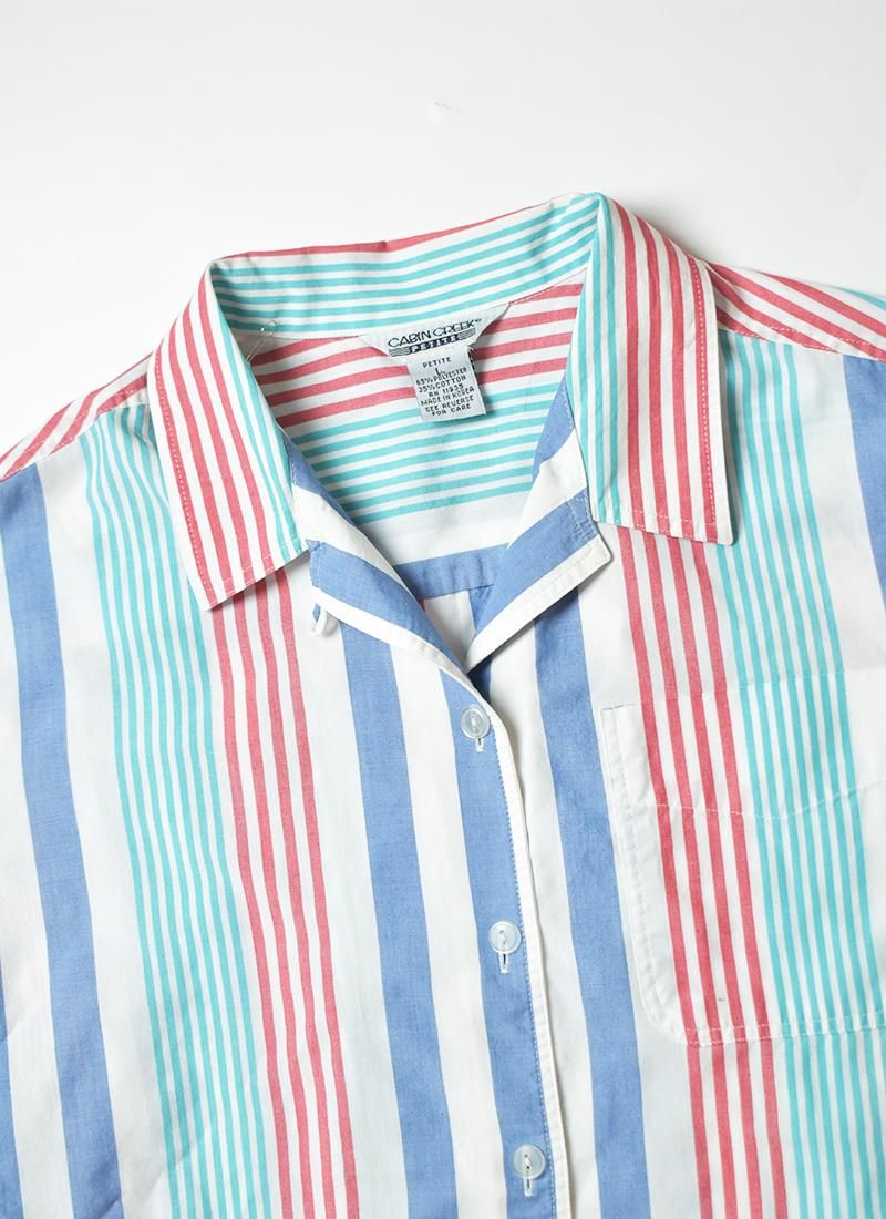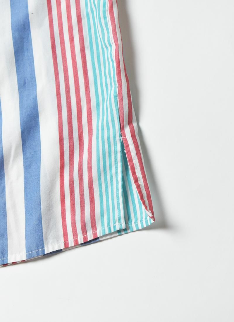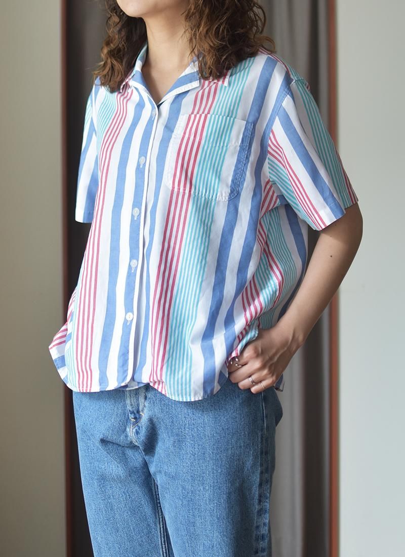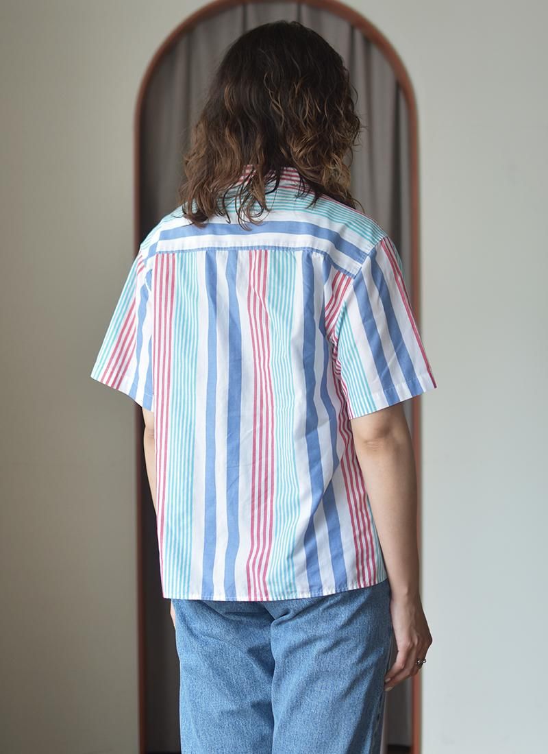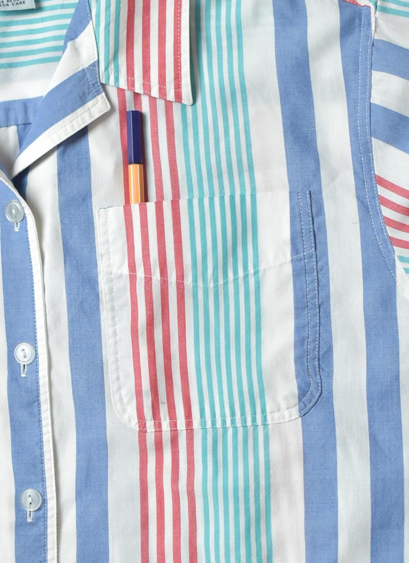 ハンサムなオープンカラーに遊び心のあるマルチストライプが素敵なブラウスになります。
