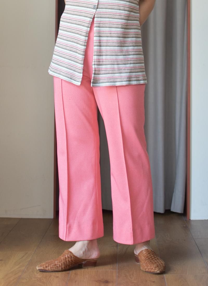 コーディネイトに映える綺麗な色合いの80sポリエステルイージーパンツ。