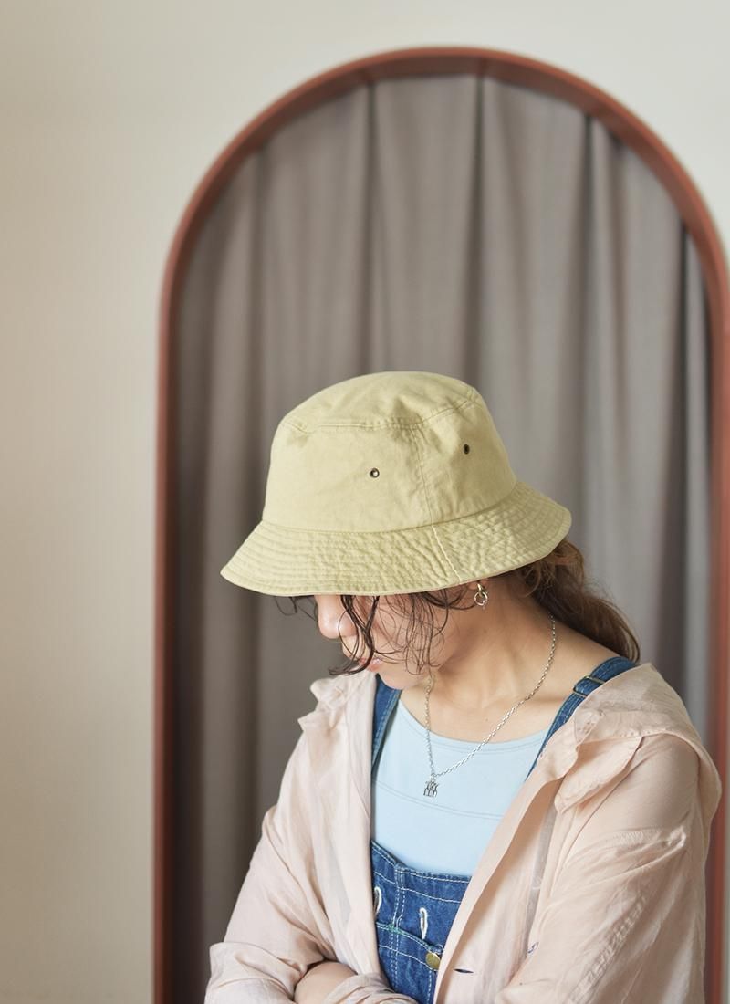 芯地を張っていないクタクタ感が今っぽいバケットハット。