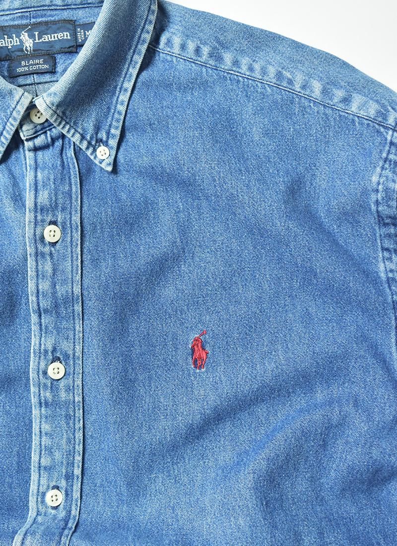 アメリカンカジュアルの永遠のスタンダードである「ラルフローレン」のデニムボタンダウンシャツ。