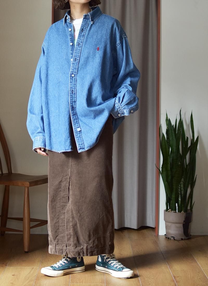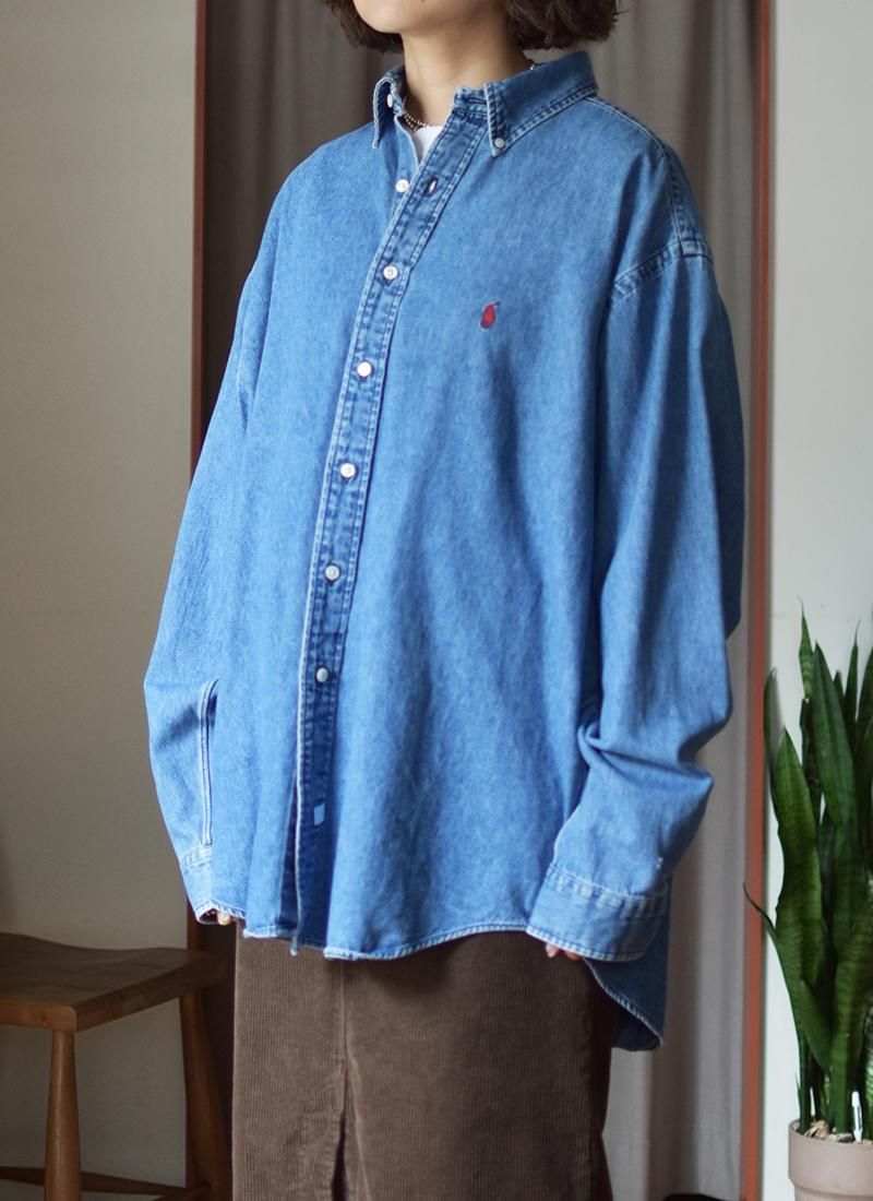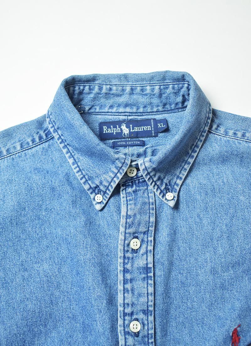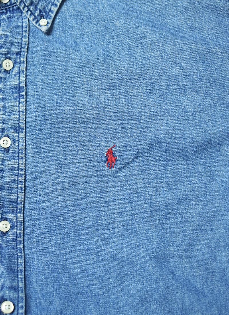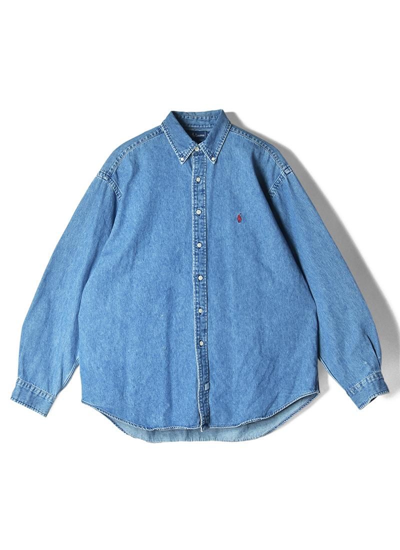アメリカンカジュアルの永遠のスタンダードである「ラルフローレン」のデニムボタンダウンシャツ。