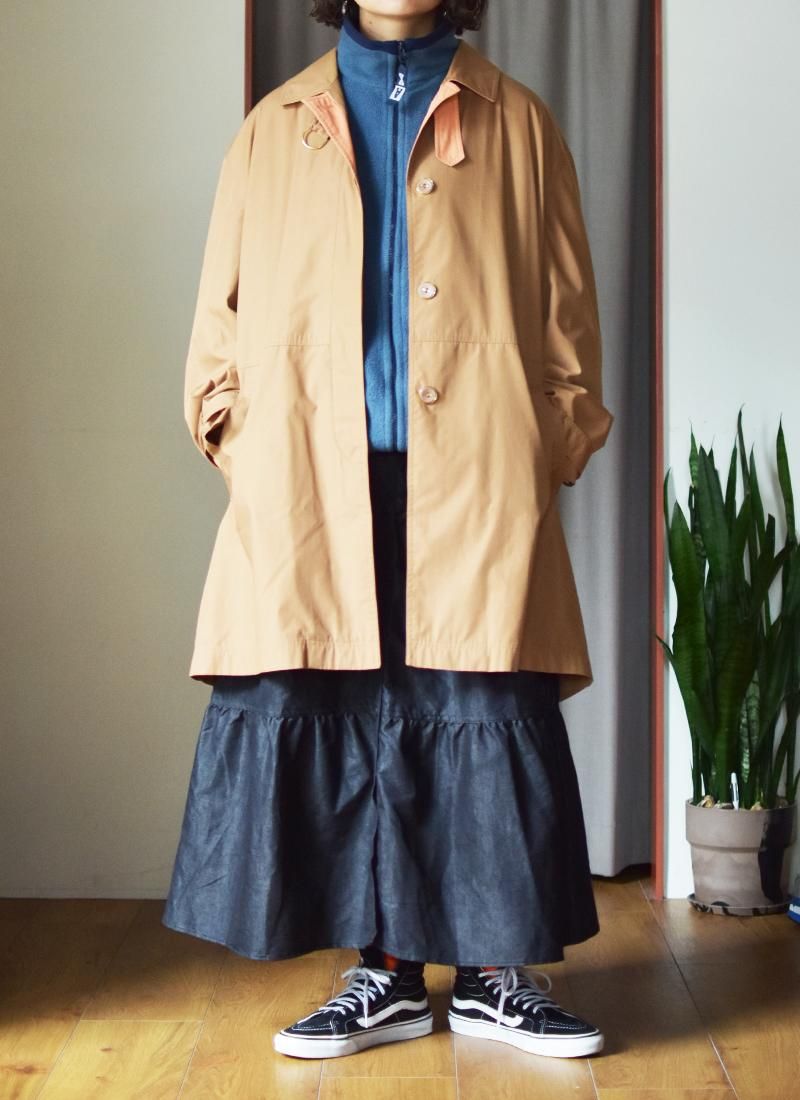 綺麗なAラインシルエットのライトコートになります。