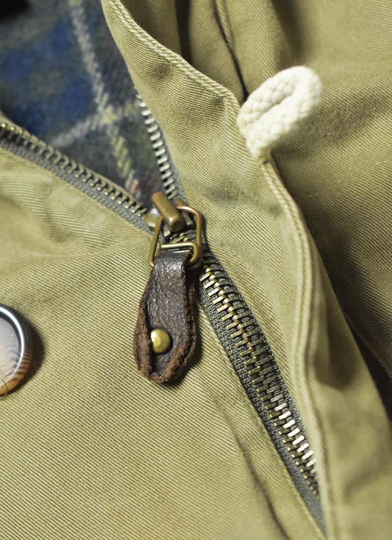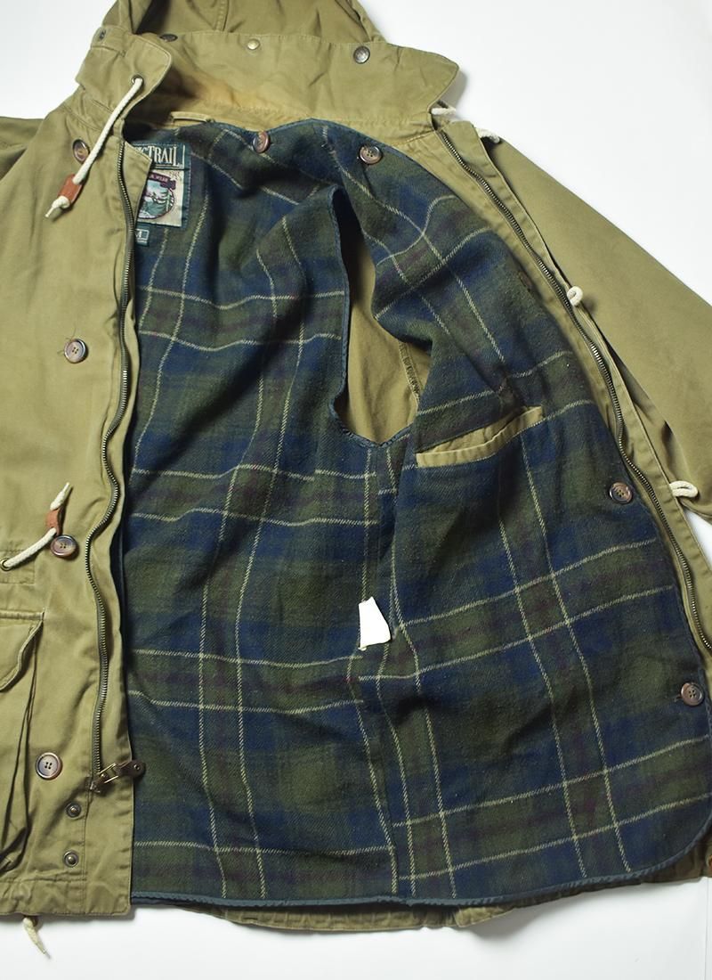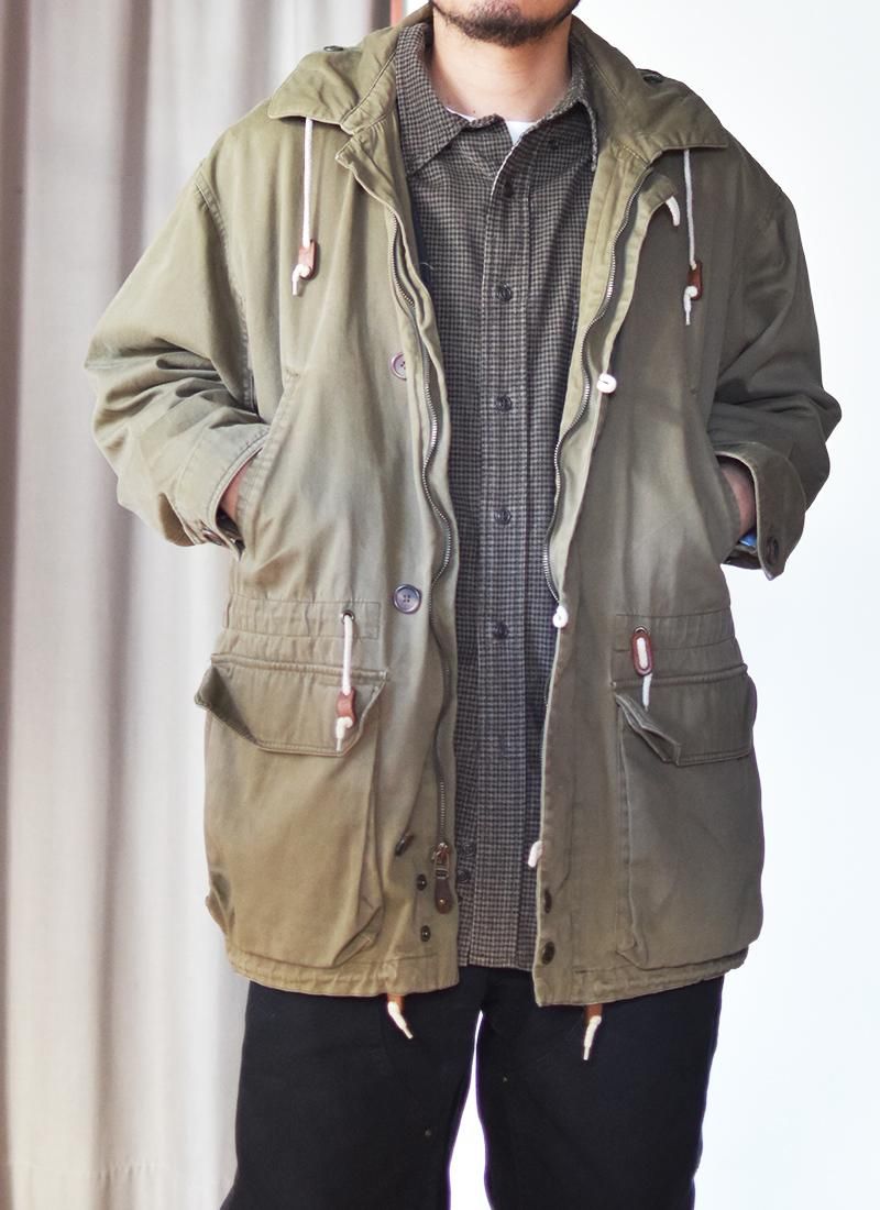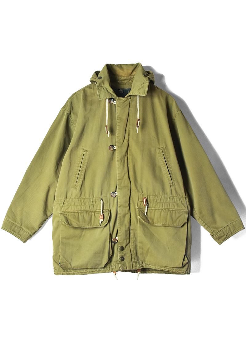 USED : ポケット付近のインク汚れ、フード収納箇所のスナップボタンの修理箇所や