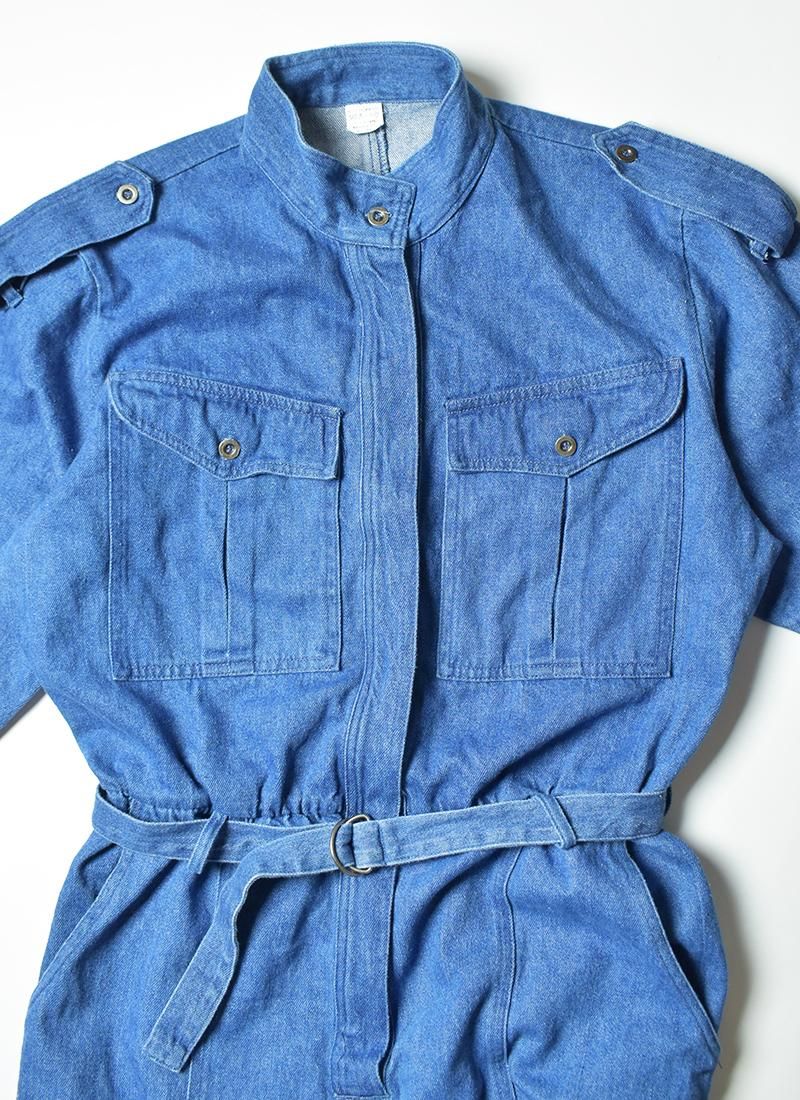 ミリタリー要素がふんだんに詰まった変わり種のフレンチデニムオールインワンです。