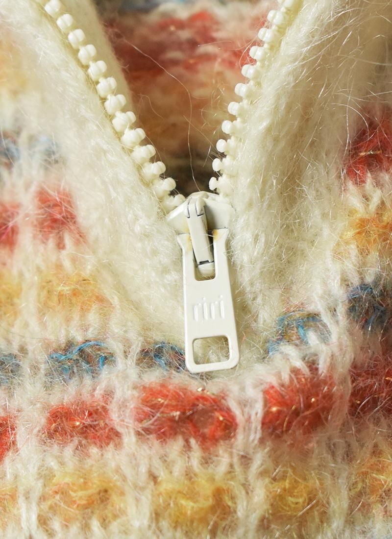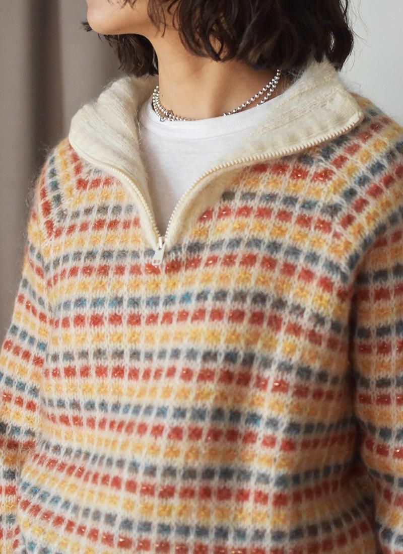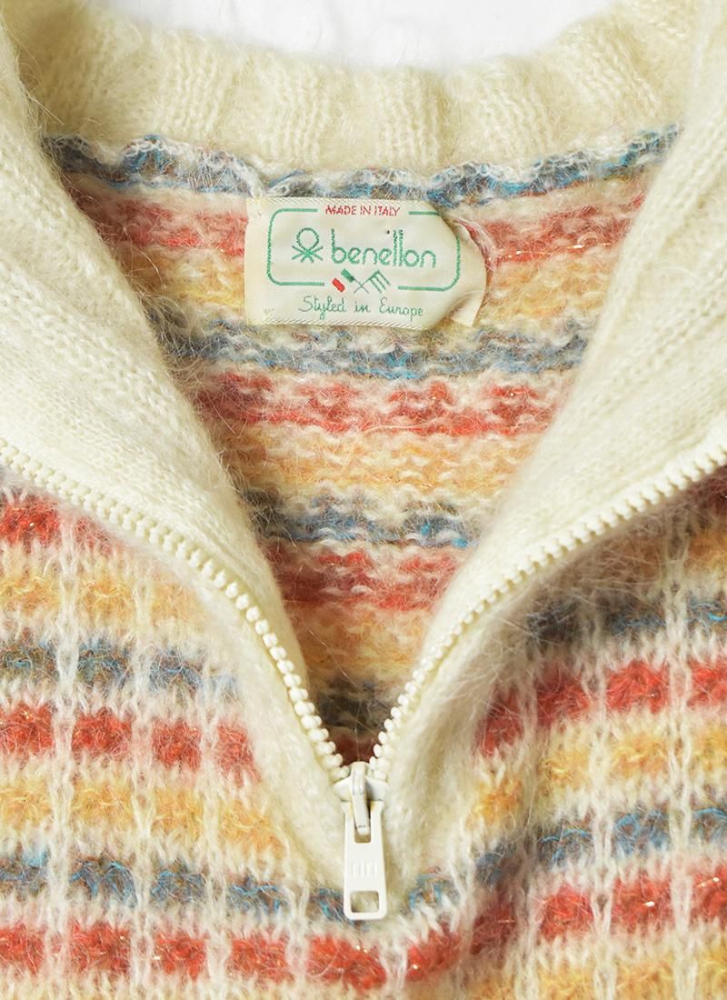 色鮮やかなマルチカラーに可愛い80年代頃のイタリア製ハーフジップニット。