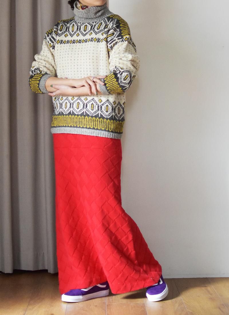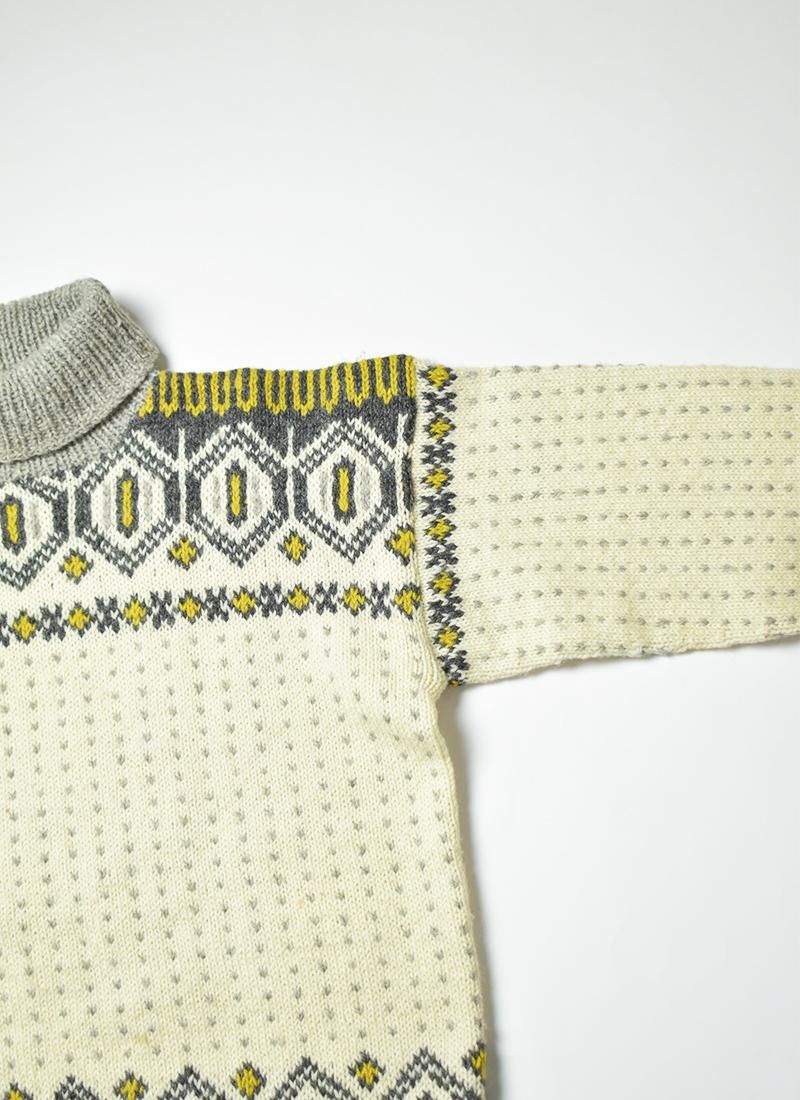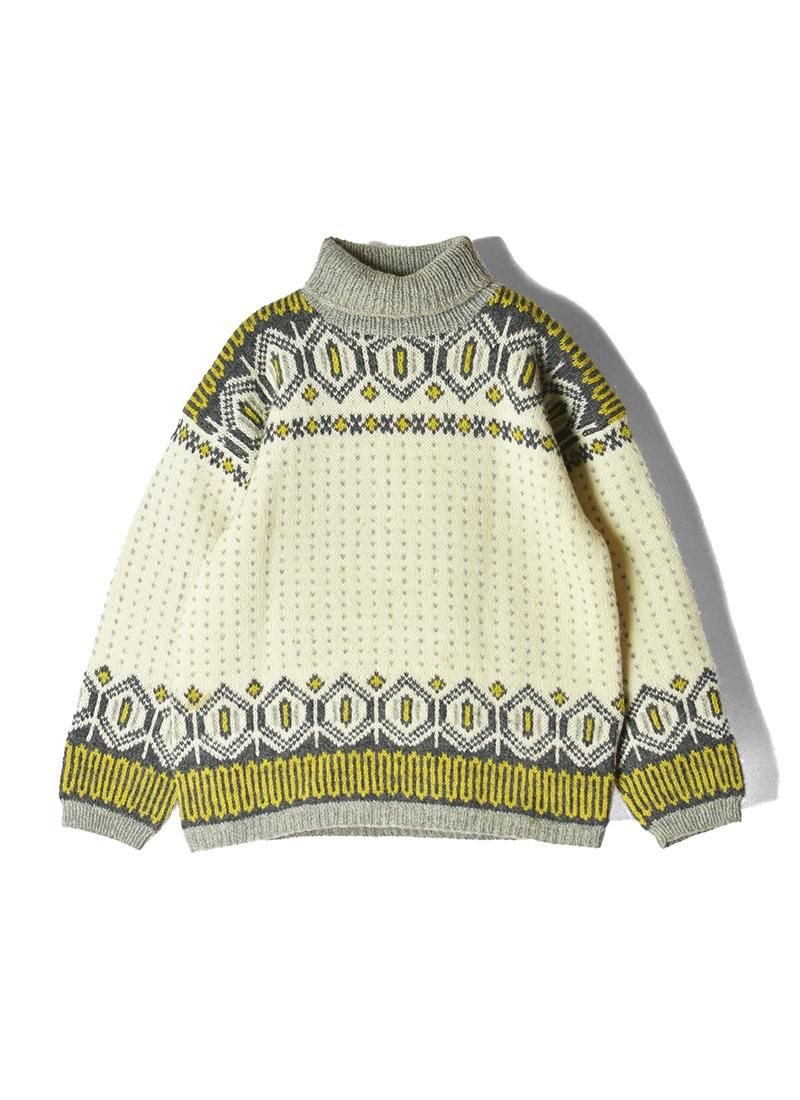 温かみのある色使いが綺麗な80sハイネックノルディックニット。