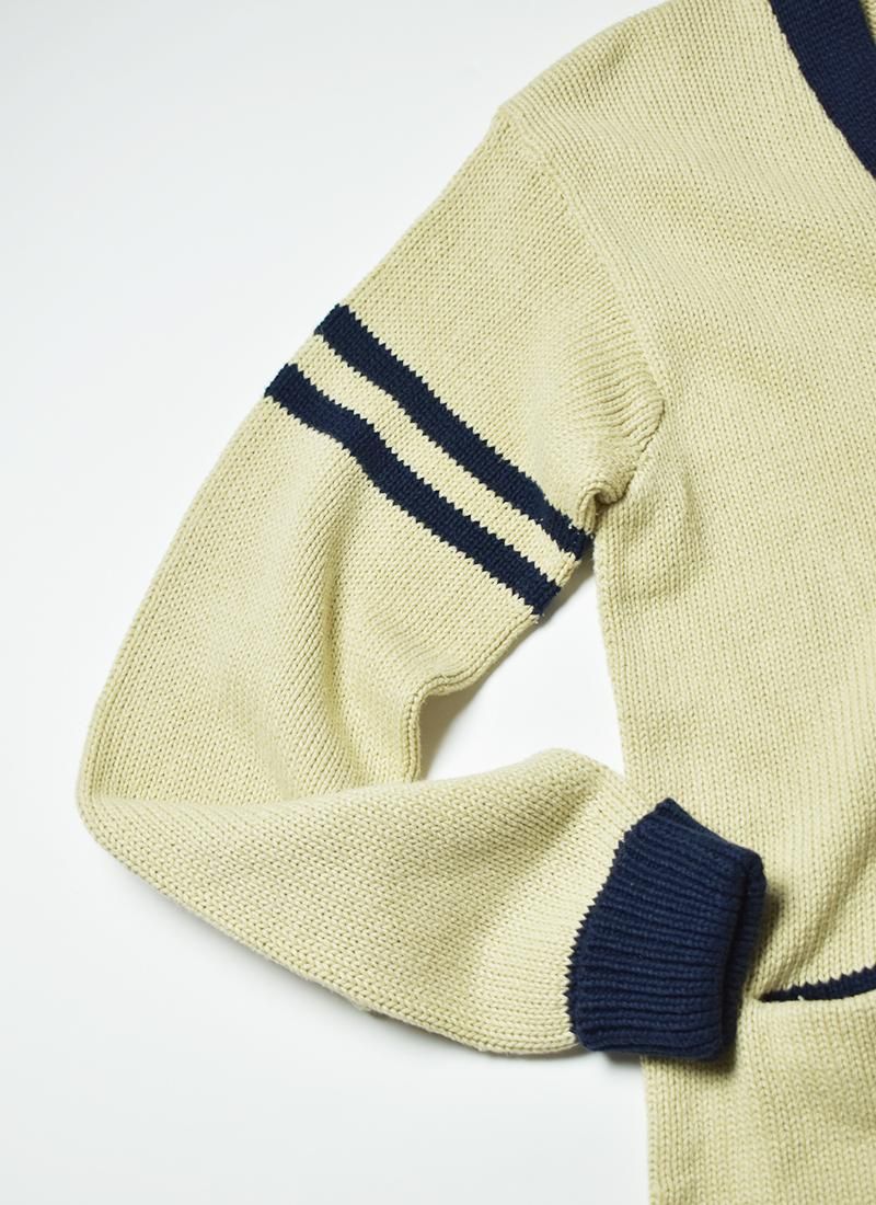 アメリカンカジュアルの永遠のスタンダードである「ラルフローレン」のレタードカーディガン。