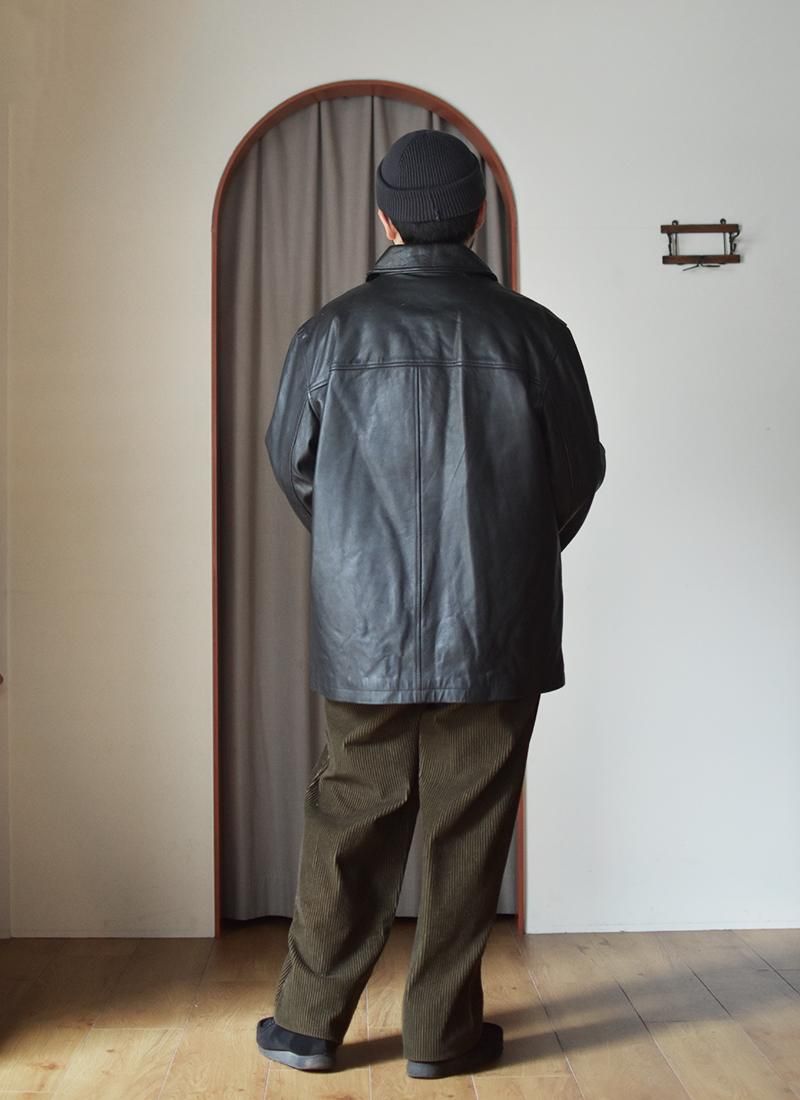 程よいゆったりシルエットで、どことなく高級感漂うブラックレザーが男前な一枚です。