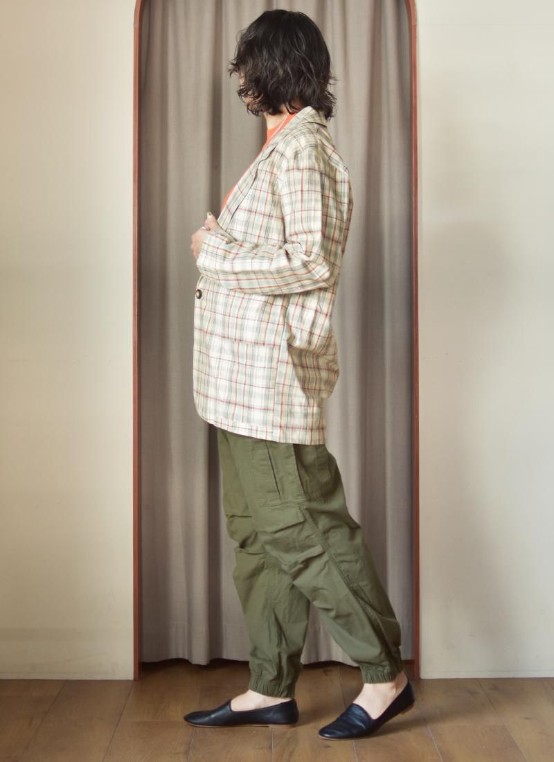 薄手で肩パッドも無いためトレンチコートなどのアウターの下にも着用出来ます。