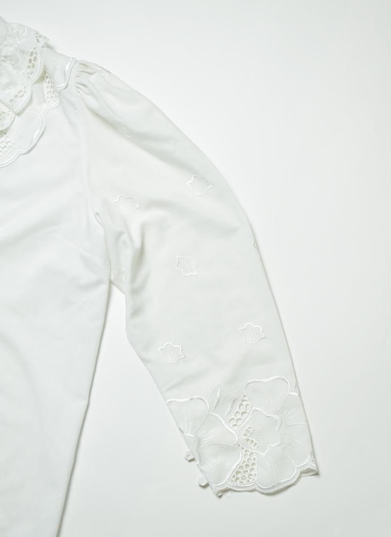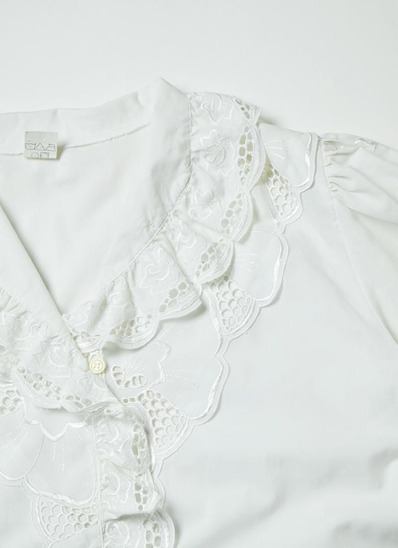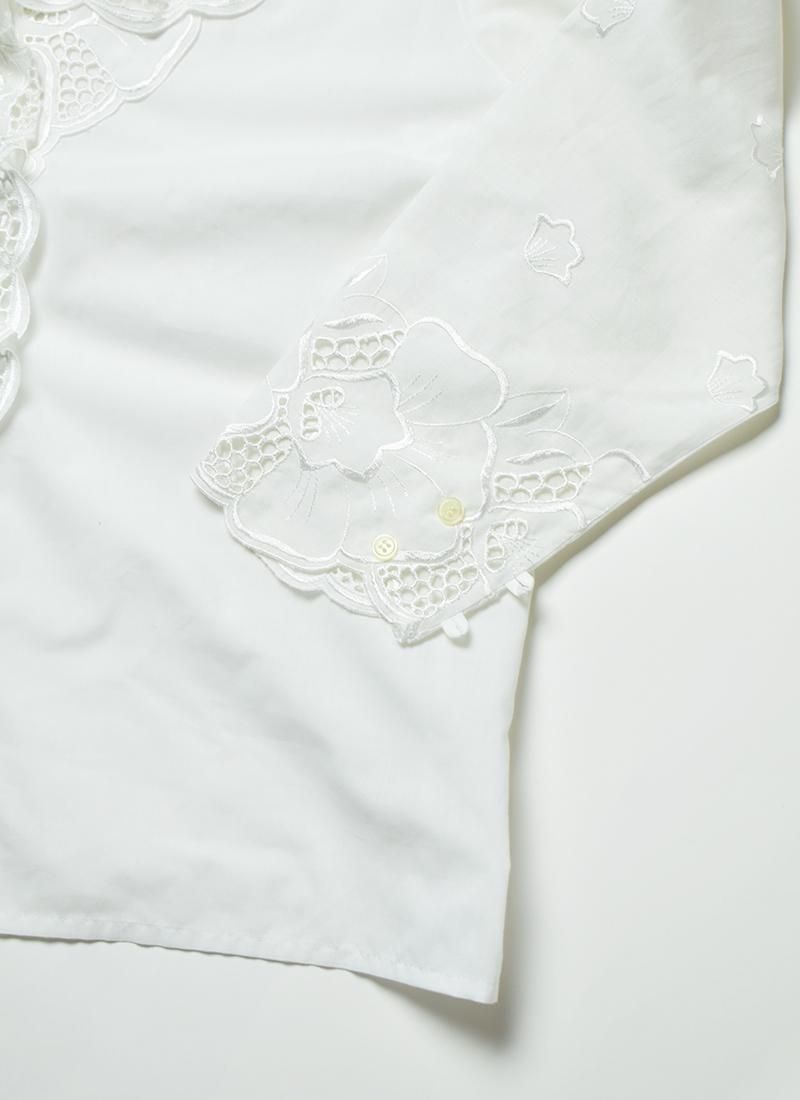 首元のフリルと刺繍の入った袖が可愛らしいユーロブラウス。