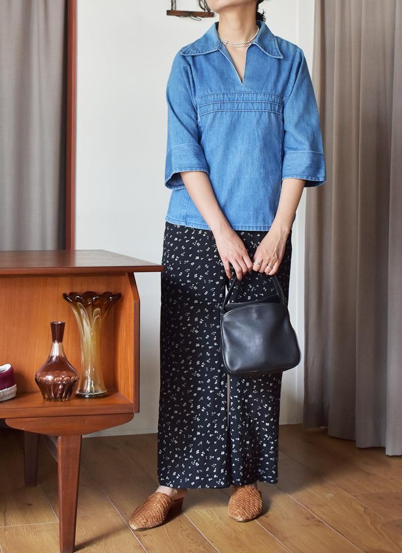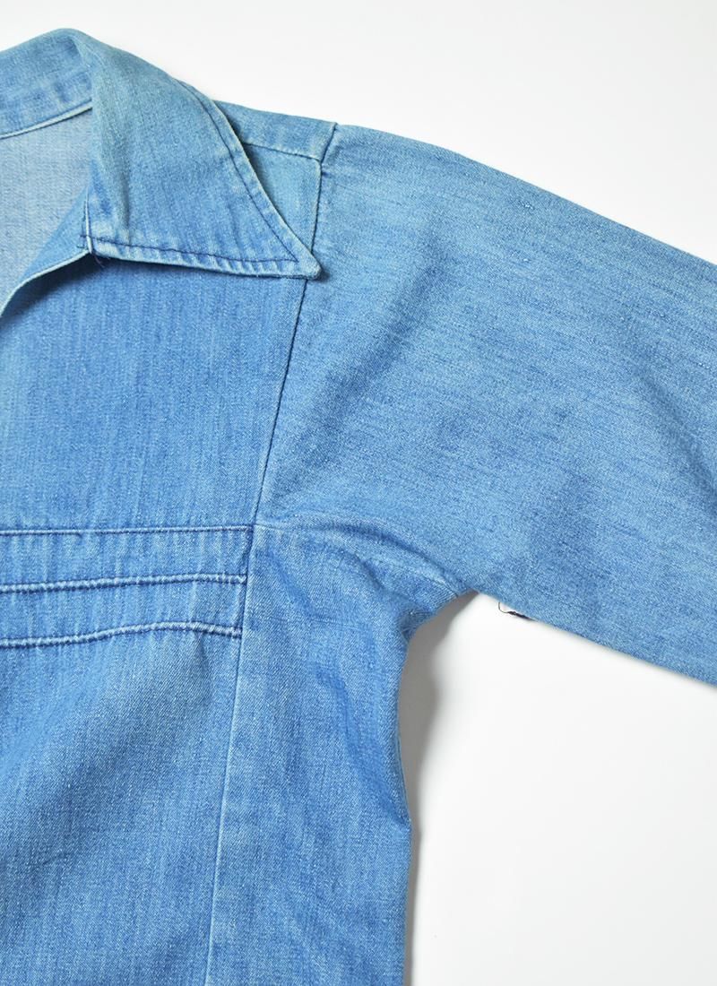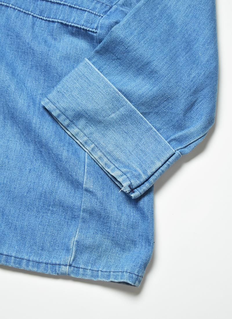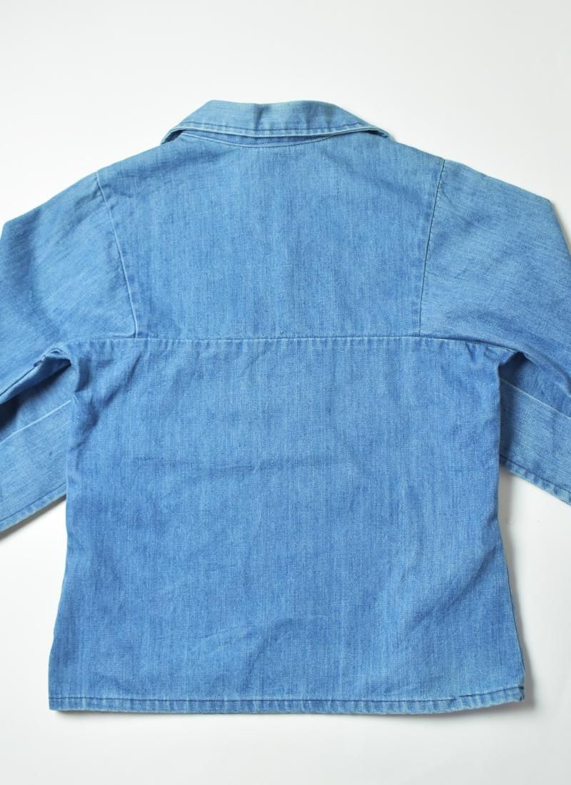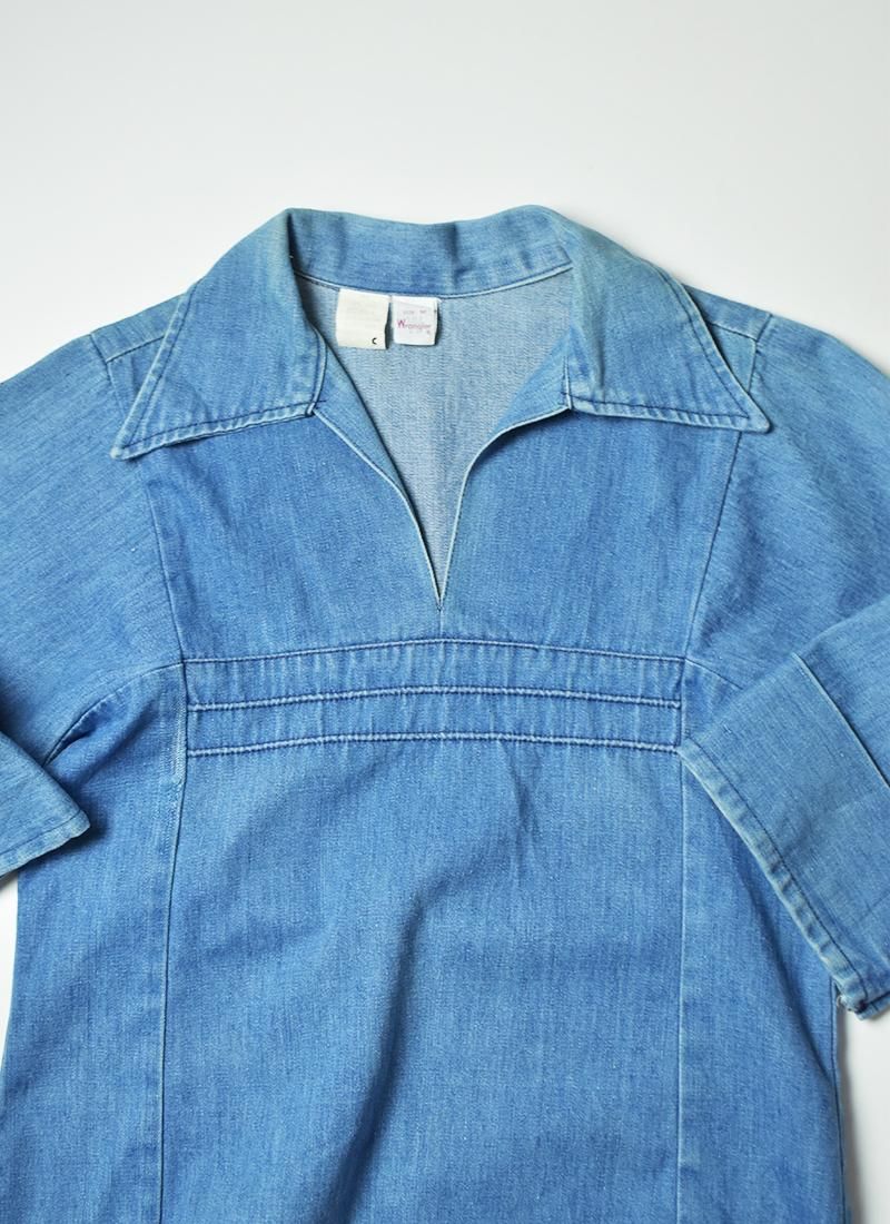 大きめな襟や肩の切り替えが特徴的な70年代頃「ラングラー」のデニムプルオーバーシャツ。