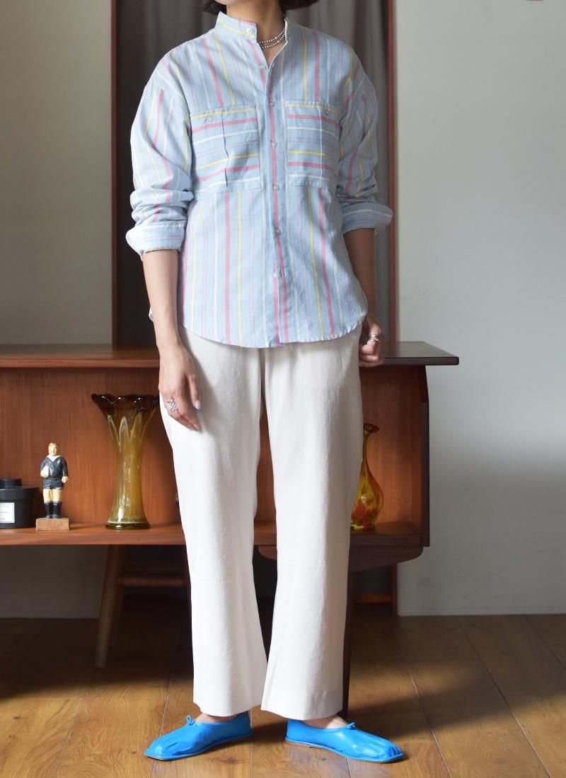 ペールカラーのストライプ柄が可愛い80年代頃のシャツになります。