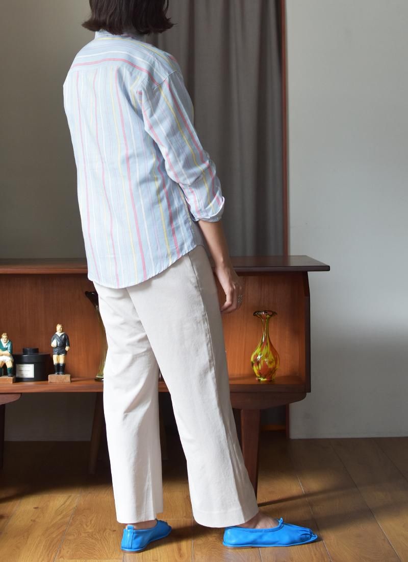 デザインのある一枚なのでボトムスはスラックスでさらっと合わせるのがお勧めです。