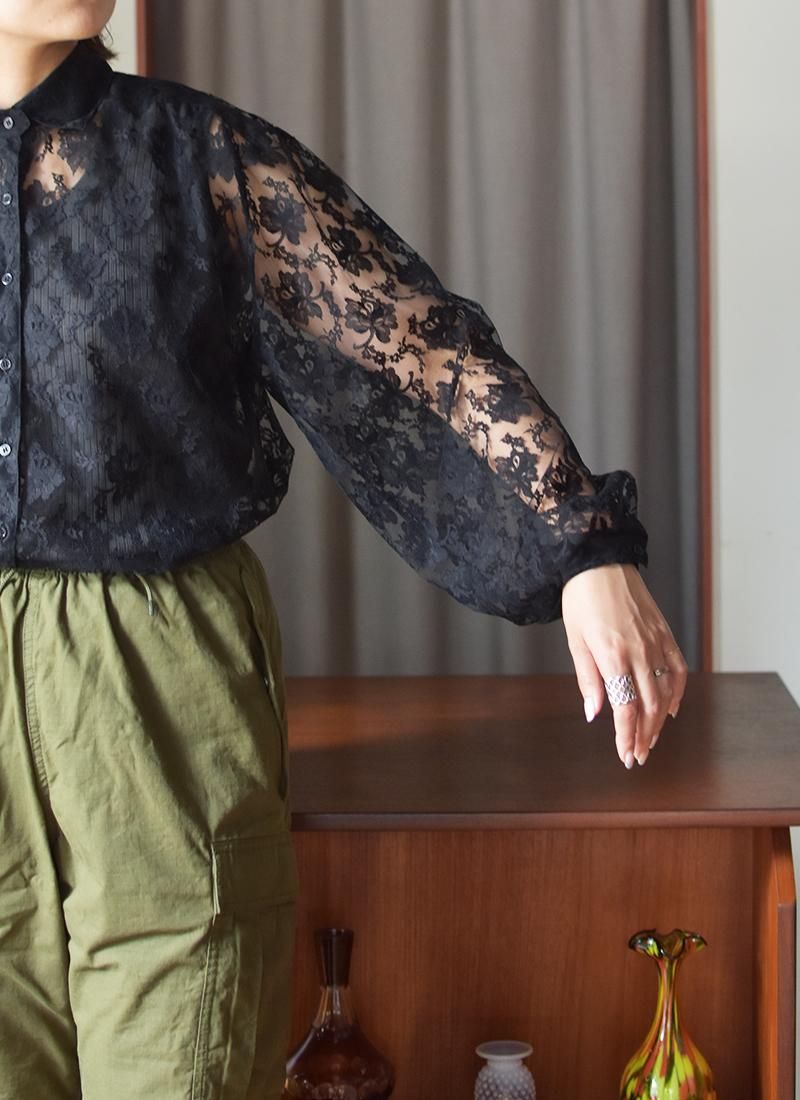 透け感のある花柄が美しい90年代頃のレースブラウス。