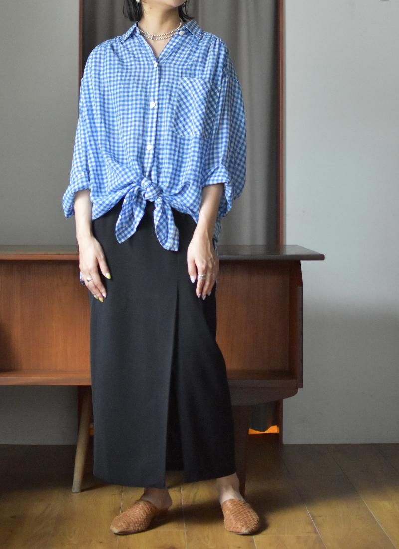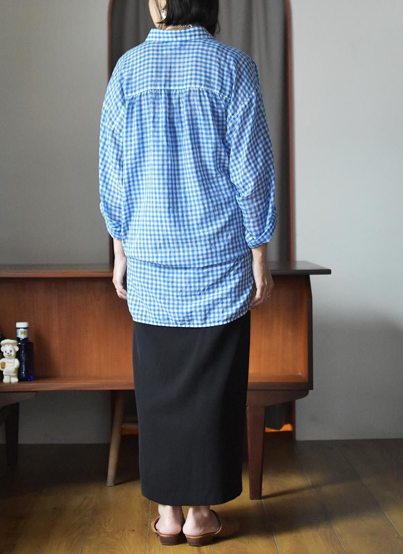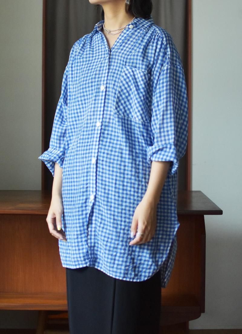 透け感のある涼しげなギンガムチェックのデザインブラウス。