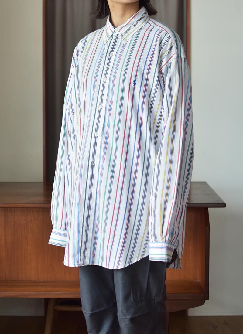 アメリカンカジュアルの永遠のスタンダードである「ラルフローレン」のストライプシャツ。