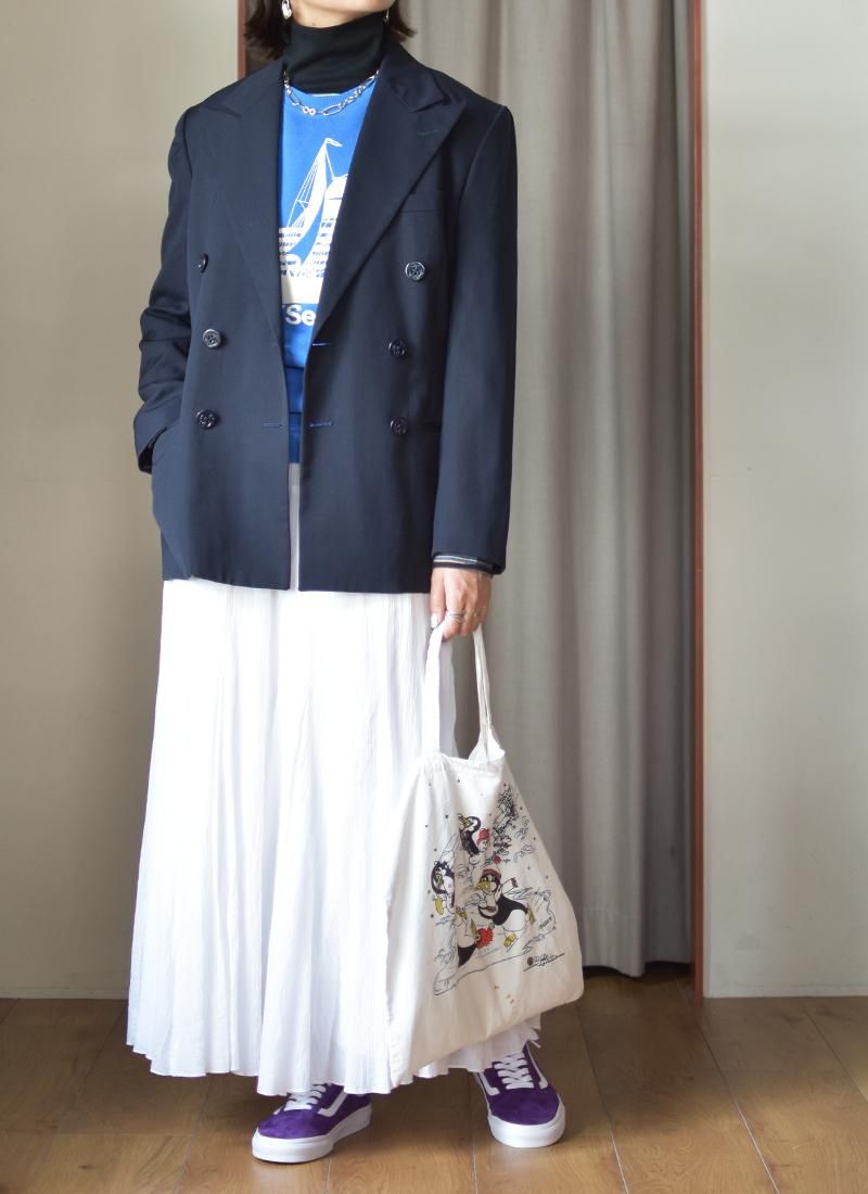 中にロゴのスウェットやニットを着込んで冬の大人カジュアルなスタイリングにもおすすめ!
