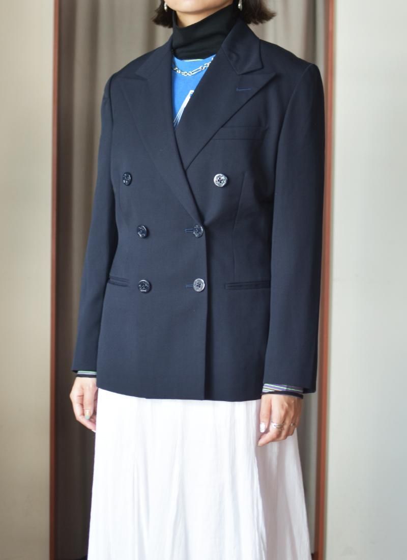 表記無し(おそらく表地:ウール、裏地:ポリエステルかと思われます。