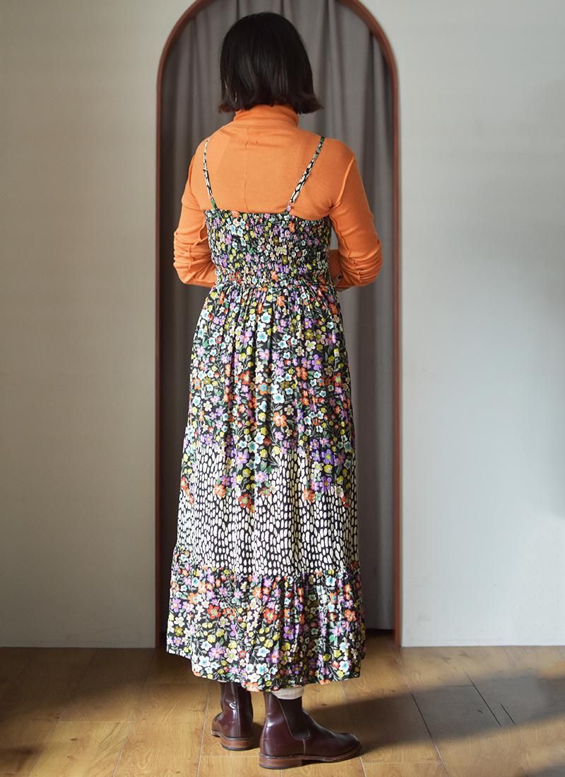 裾のティヤードのデザインが可愛い花柄ドレス。