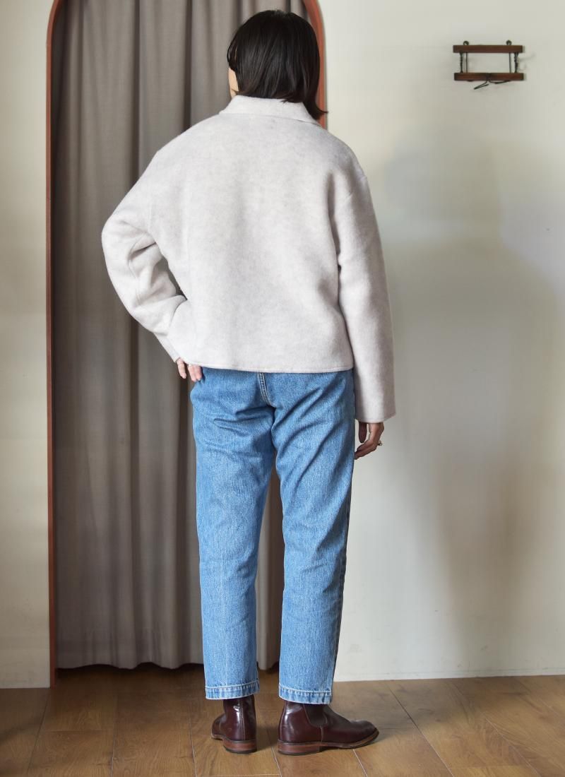 アウターとしてはもちろん、ニットのカーディガンのような感覚で着られる一着です。