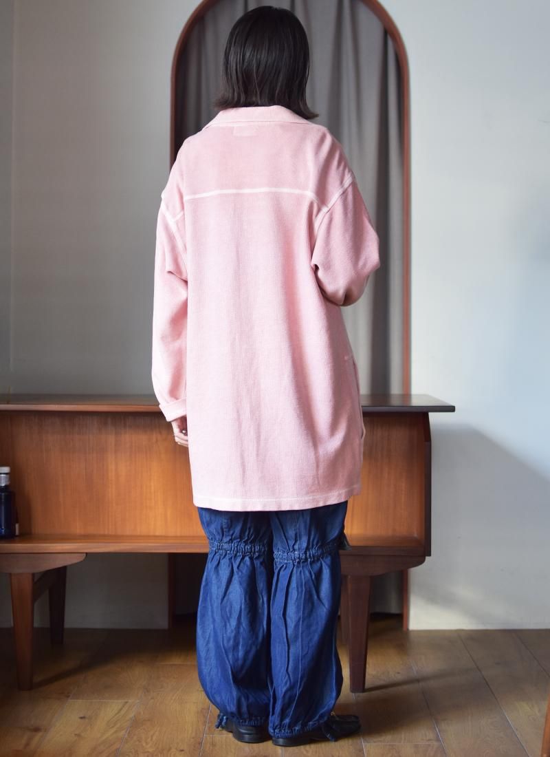 アームホールがたっぷりとしたデザインで、中にスウェットや薄手のニットも着用できます。