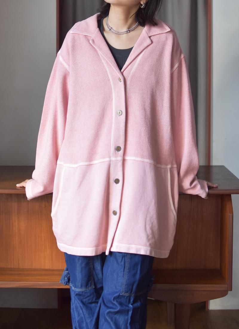 コットンニットの様な着心地なので、Tシャツの上にも羽織れます。