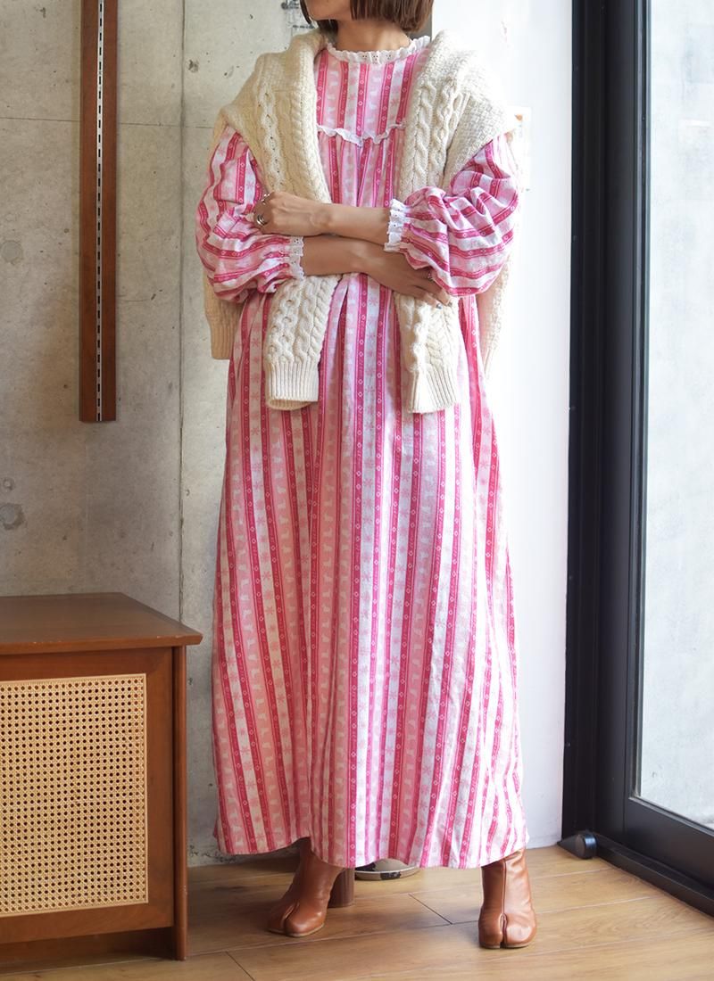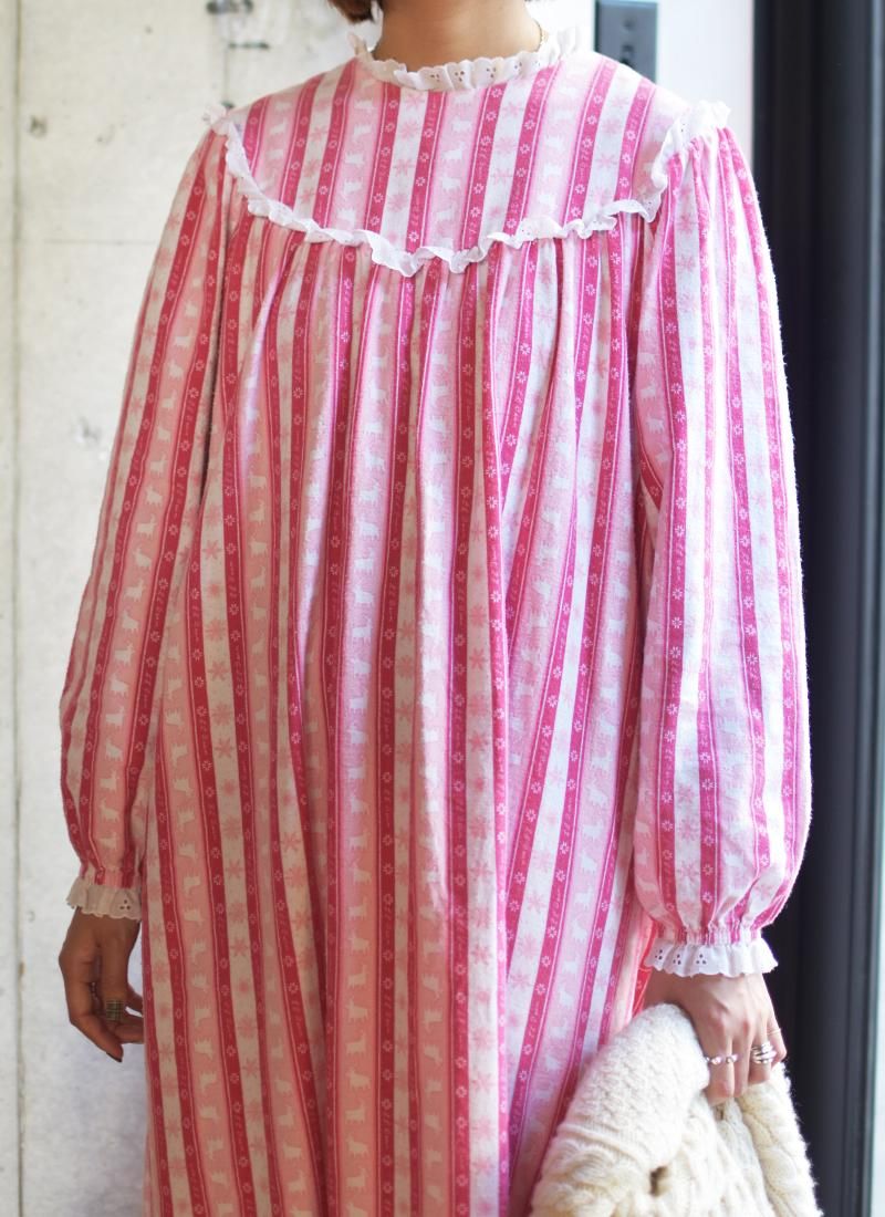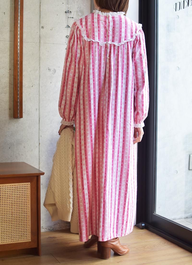 首回りと袖口のレースが可愛い80年代頃の「L.L.BEAN 」によるスリーピングロングドレス。
