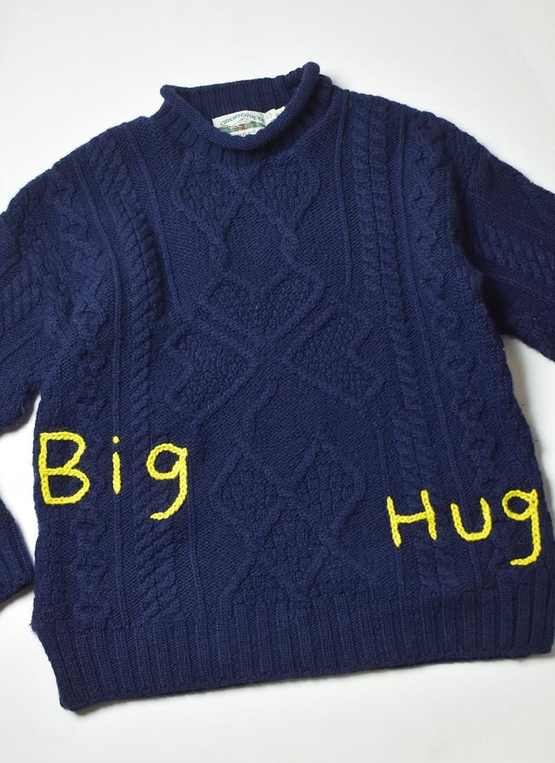 こちらは”BIG HUG”とバックにハート柄に沿った刺繍を入れました。