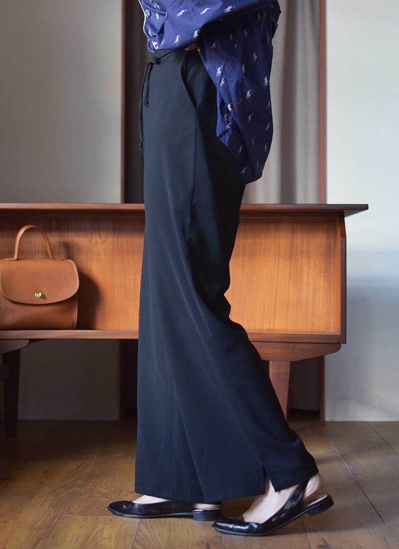腿周りがゆったりとしたワイドシルエットで、ショート丈のトップスとの相性が抜群です。